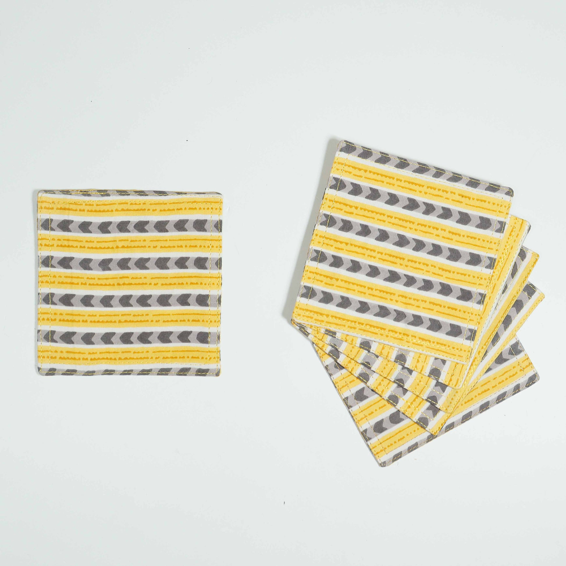 Tired of wiping coffee stains from your side table? (or) Worried about drinks rims leaving a stain on your side table? Fret not, Ekatra has beautiful new fabric coasters to keep your counters stain-free. Carefully handstitched with premium cotton fabric, our coasters will also protect your tables from burns by mugs filled with piping hot tea. Replace your outdated coasters, odds and bits of chipped ceramic pieces with our easy to maintain, eco-friendly coasters. Its compact design and funky prints are sure to start a conversation when you host guests