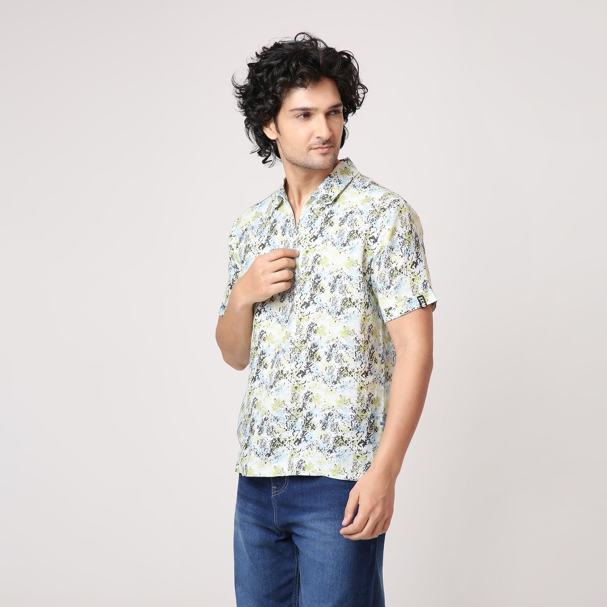 This woven linen polo is a must-have for your summer wardrobe. crafted from premium linen fabric, features an all-over abstract floral print in soft tones. Designed with a zip placket closure and short sleeves, it strikes the perfect balance between casual and polished. Ideal for warm days, weekend getaways, or brunch outings.