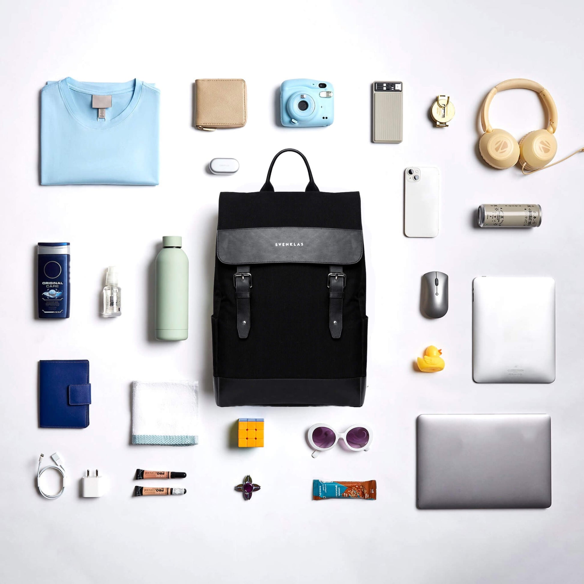 Leather detailing is used in the carry handle, flap tie, base, shoulder strap ends, trims, under the flap pocket, keychain holder, velcro closure, and inner binding.