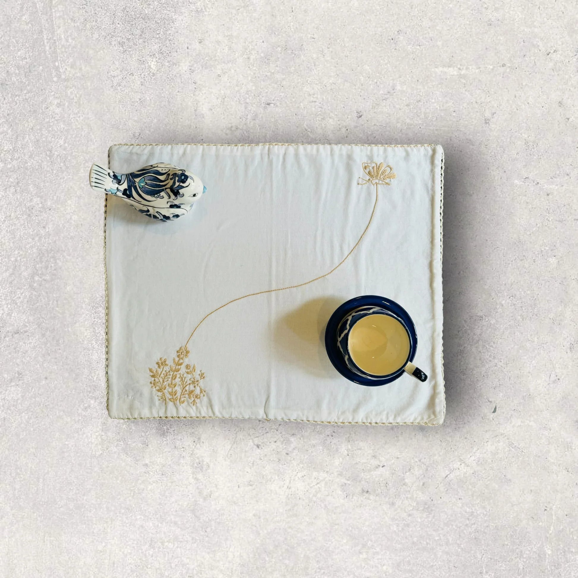 Bring a touch of floral elegance to your dining experience with the Anthophile Collection table placemats. This delicately embroidered mat captures the essence of blooming florals amidst the serene chill of a winter soirée, and adds a sophisticated, nature-inspired accent to your setting.