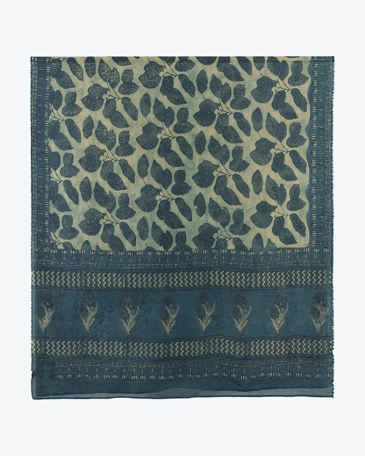 Art-inspired teal blue Cotton dupatta with floral print, perfect for a classy lookbook.