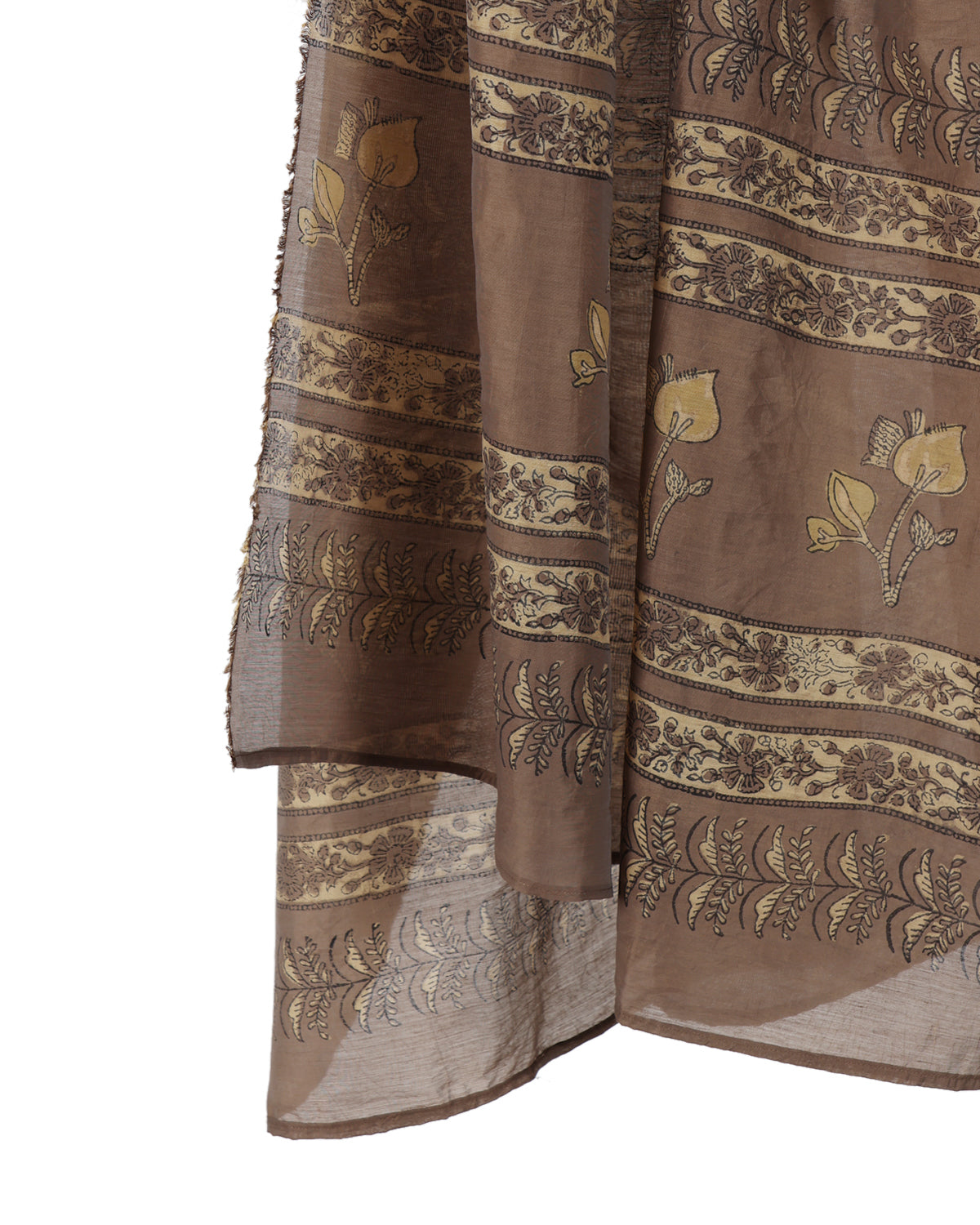 Autumn-inspired dupatta in ash brown color with autumn twig detailing on Cotton.