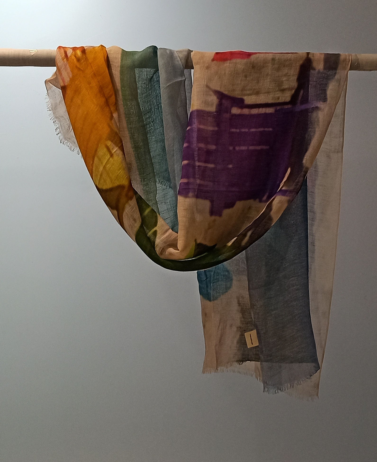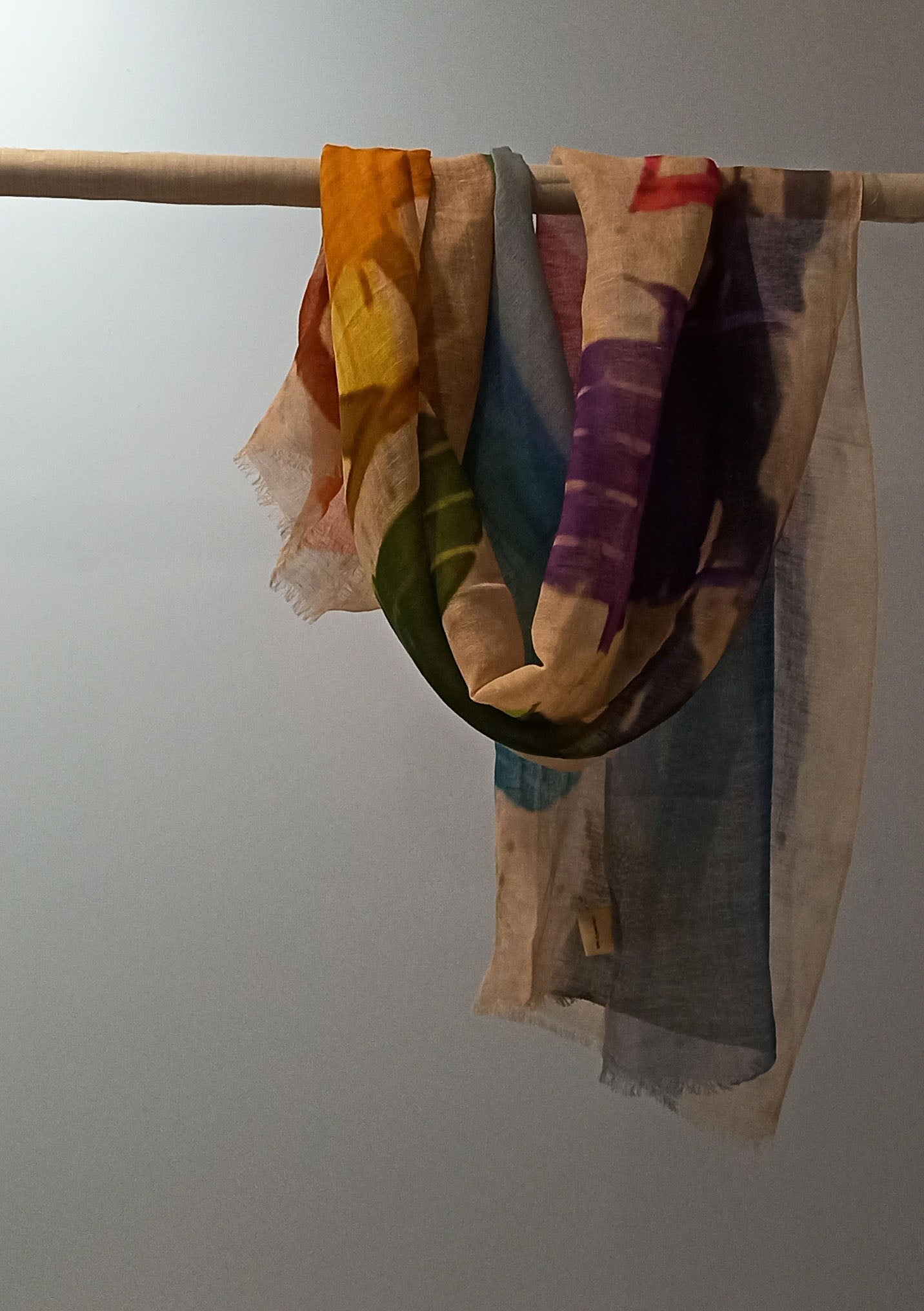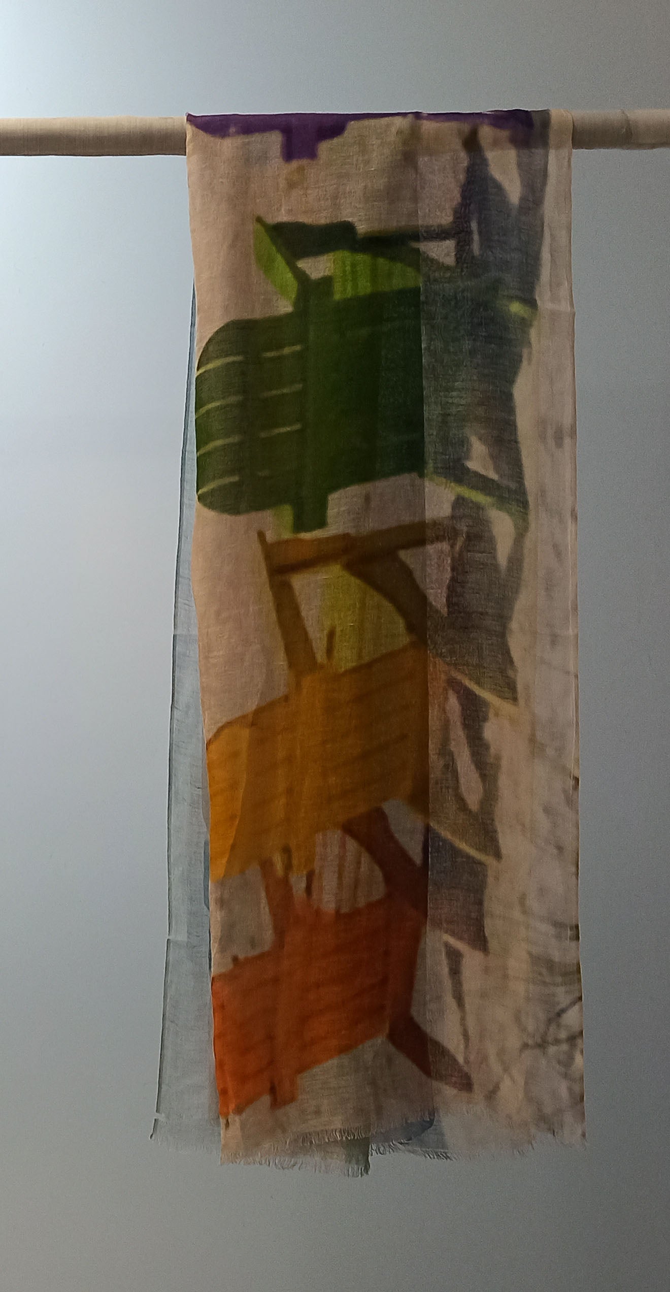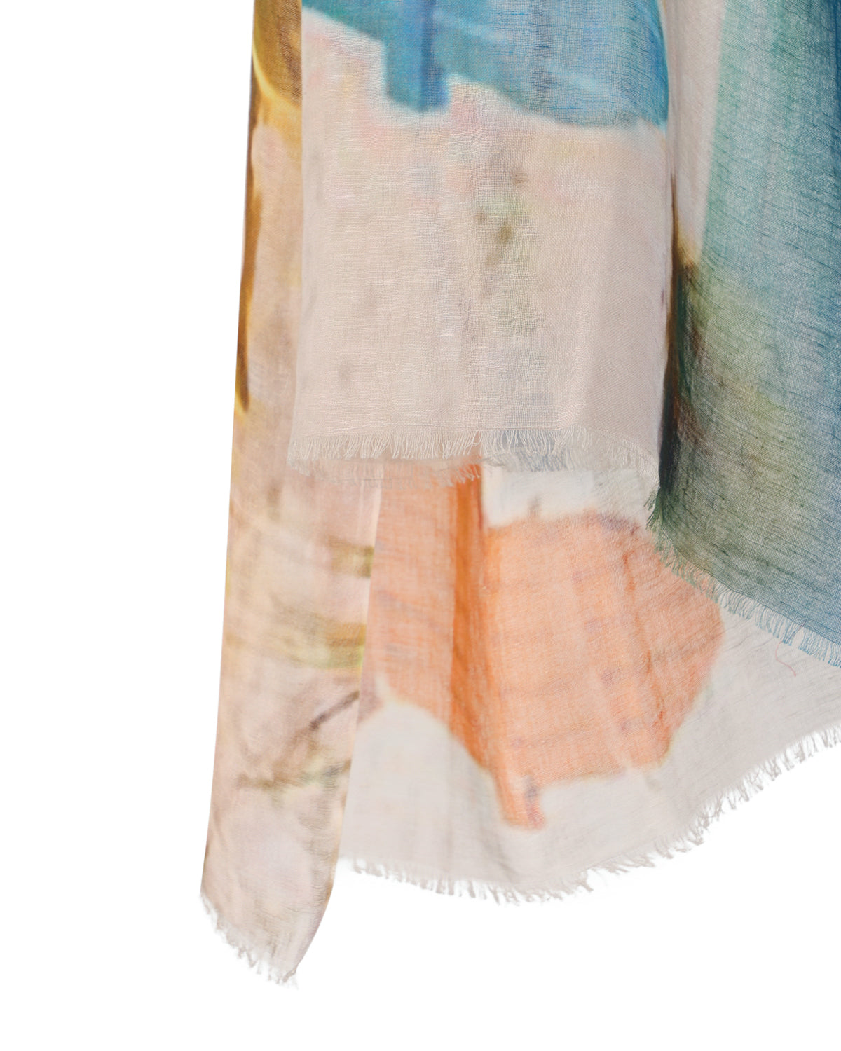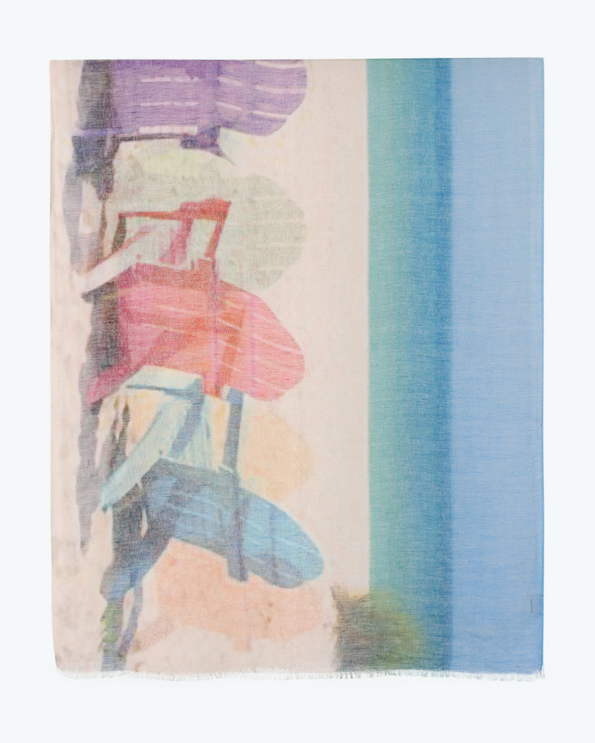 Beach vibe-inspired scarf with beach scene prints made from Cotton Linen for a beachy-day!