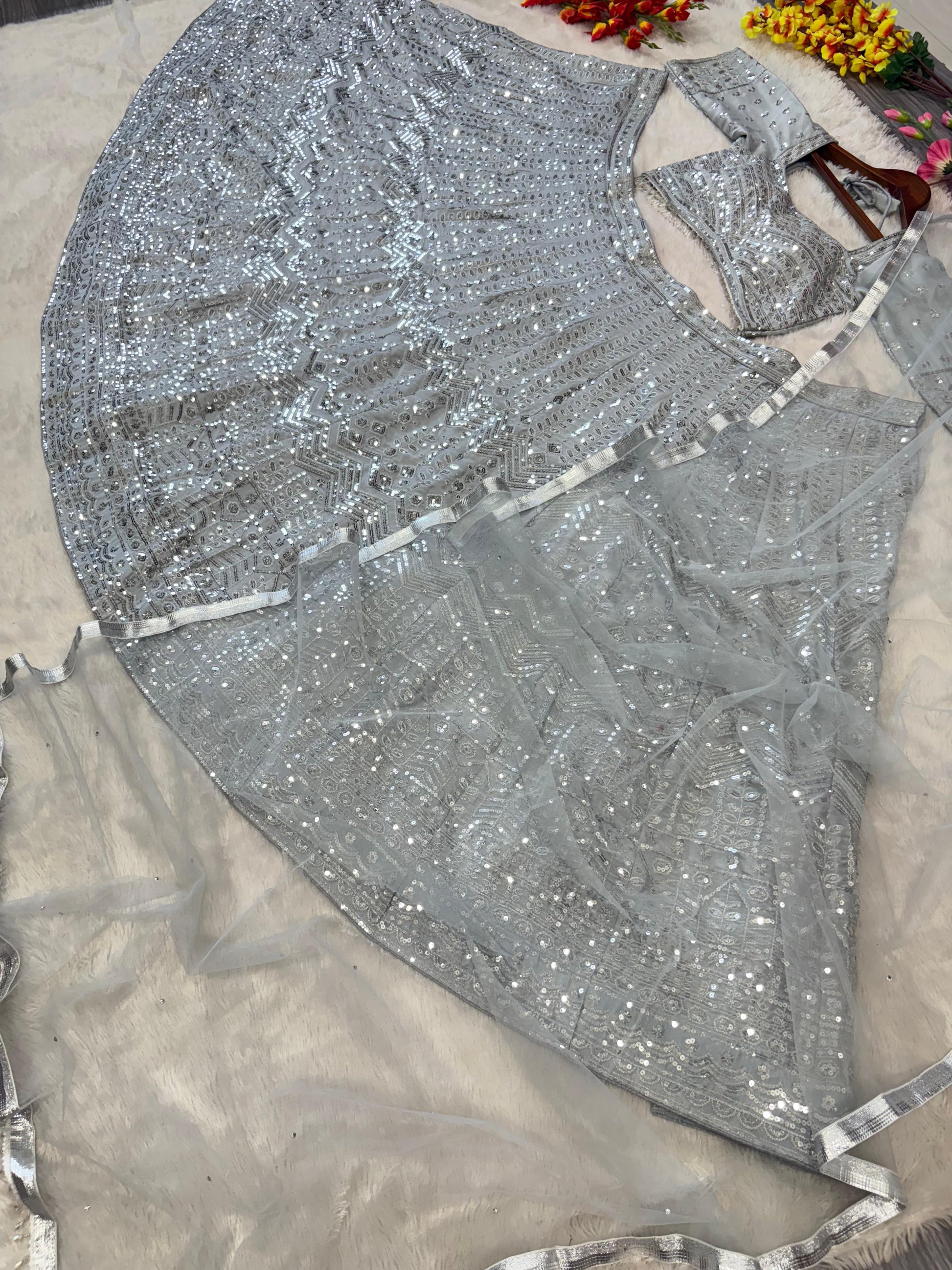 Dupatta : *Premium Net Embellished With Beautiful Embroidery Work , Jari Work With Heavy Sequins Work And Beautiful Hand Diamond Work With Latkan Lace Border Work*( 2.5 MTR )