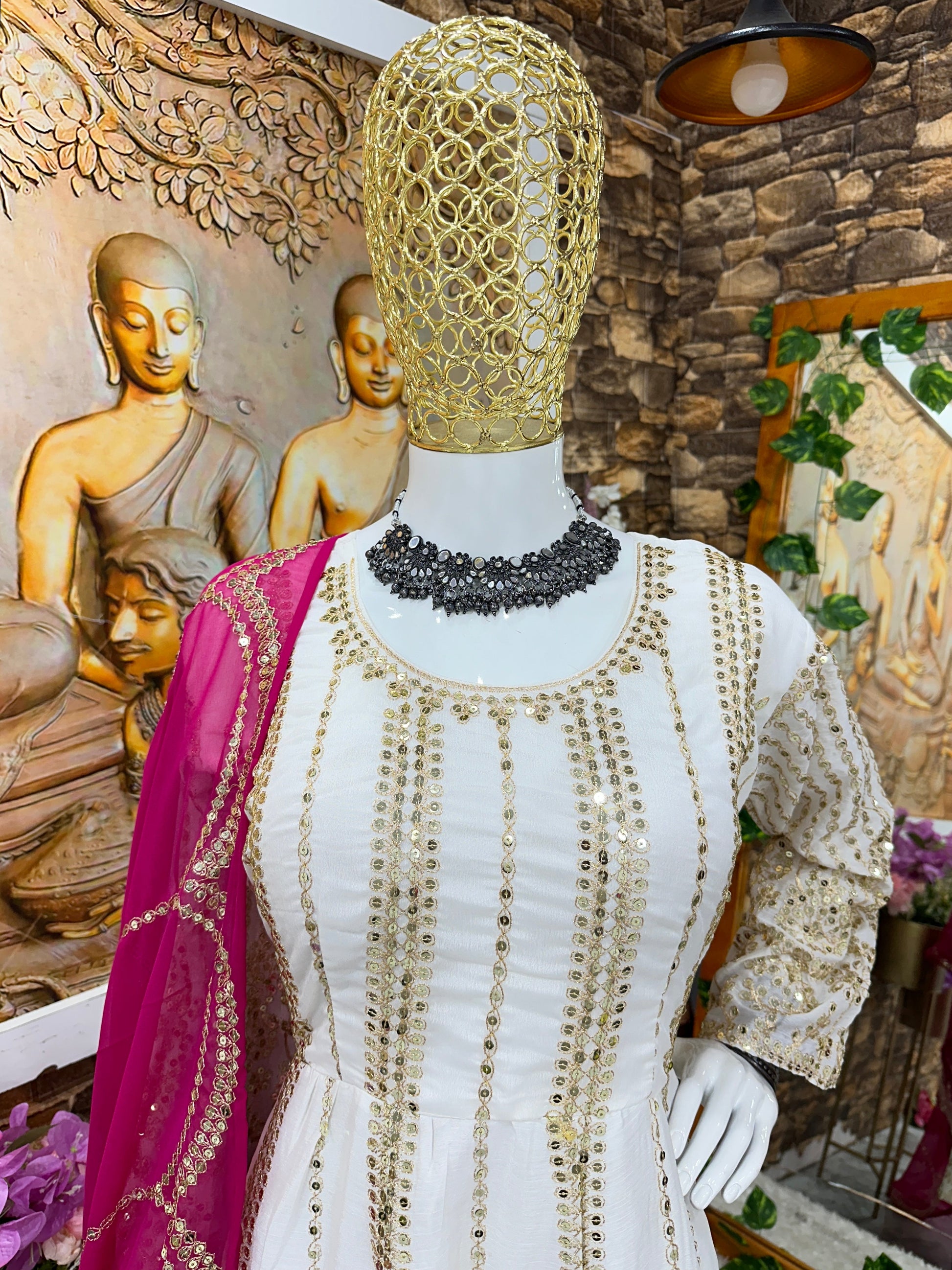 Beautiful Party Wear Anarkali Gown With Pent And Dupatta