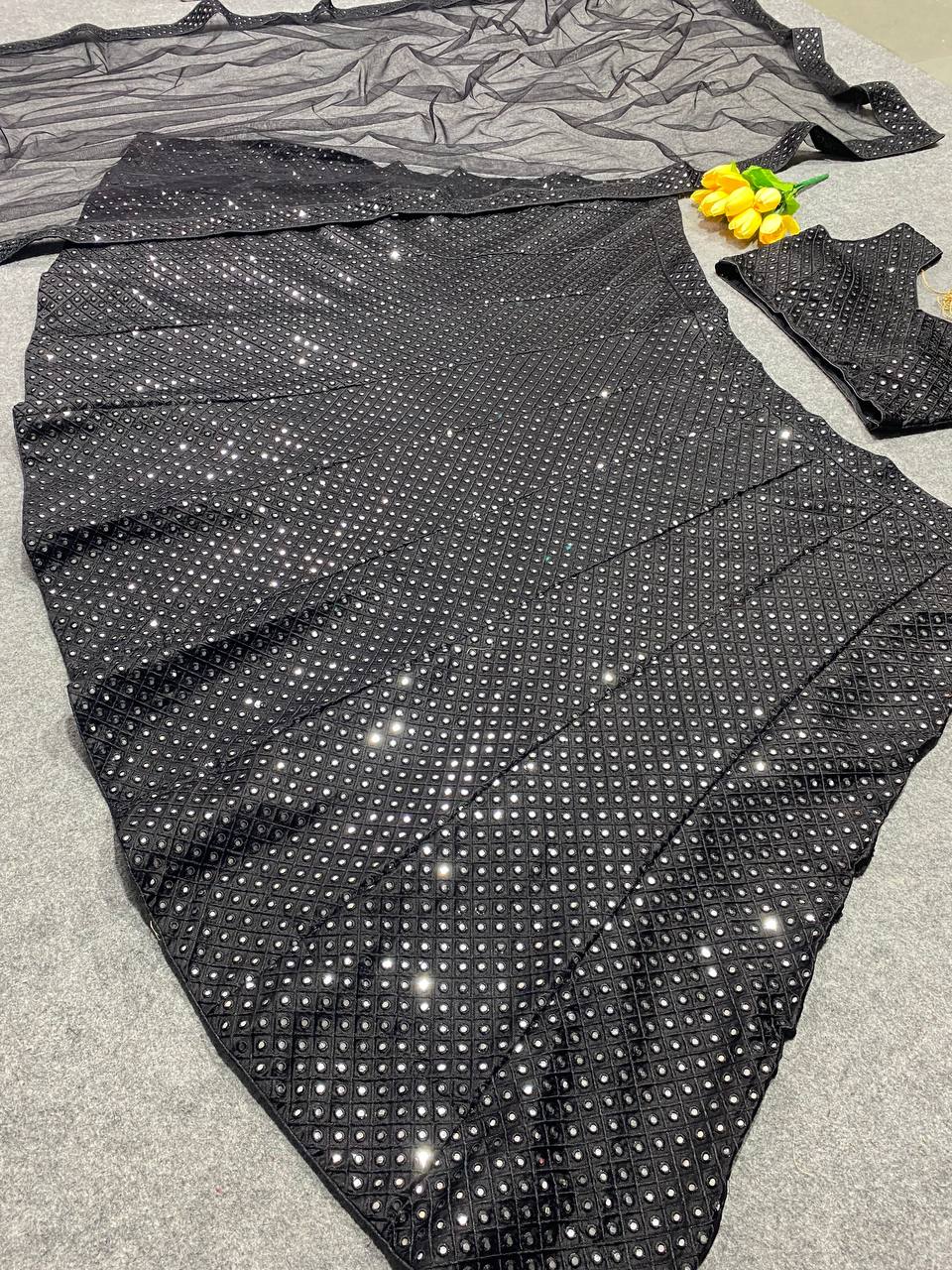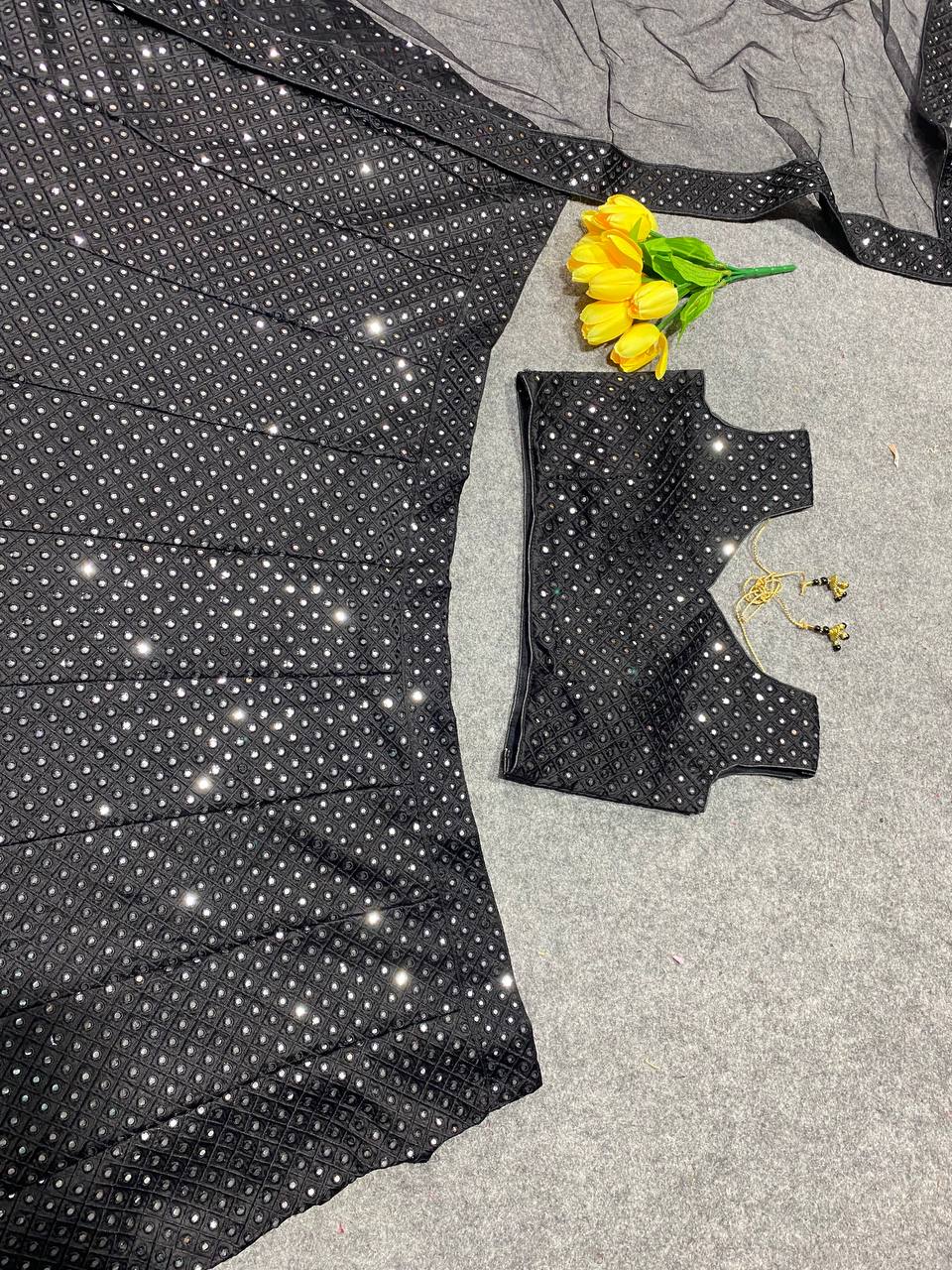Black Colour Embroidered Attractive Party Wear Silk Lehenga choli has a Regular-fit and is Made From High-Grade Fabrics And Yarn.
