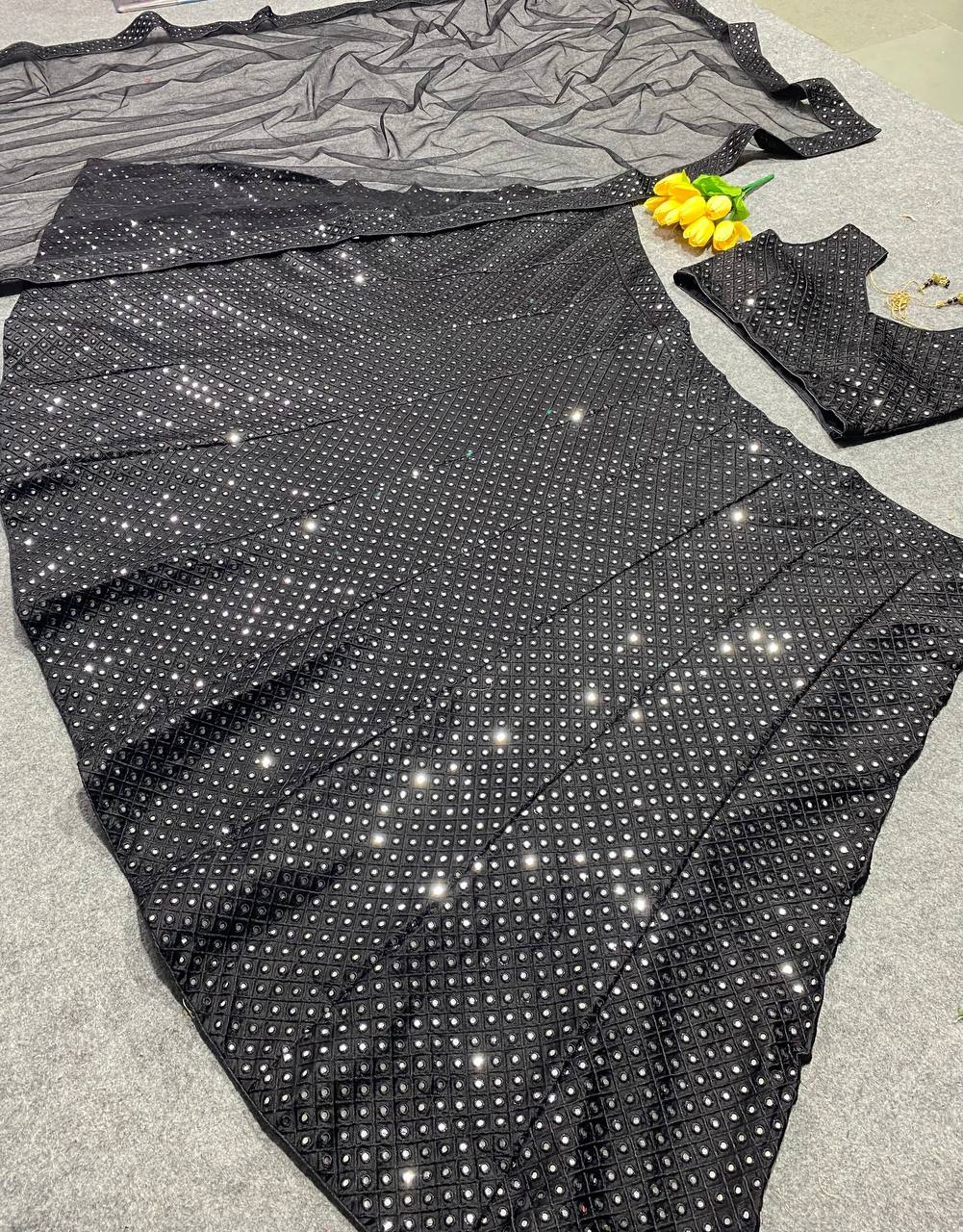 Black Colour Embroidered Attractive Party Wear Silk Lehenga choli has a Regular-fit and is Made From High-Grade Fabrics And Yarn.