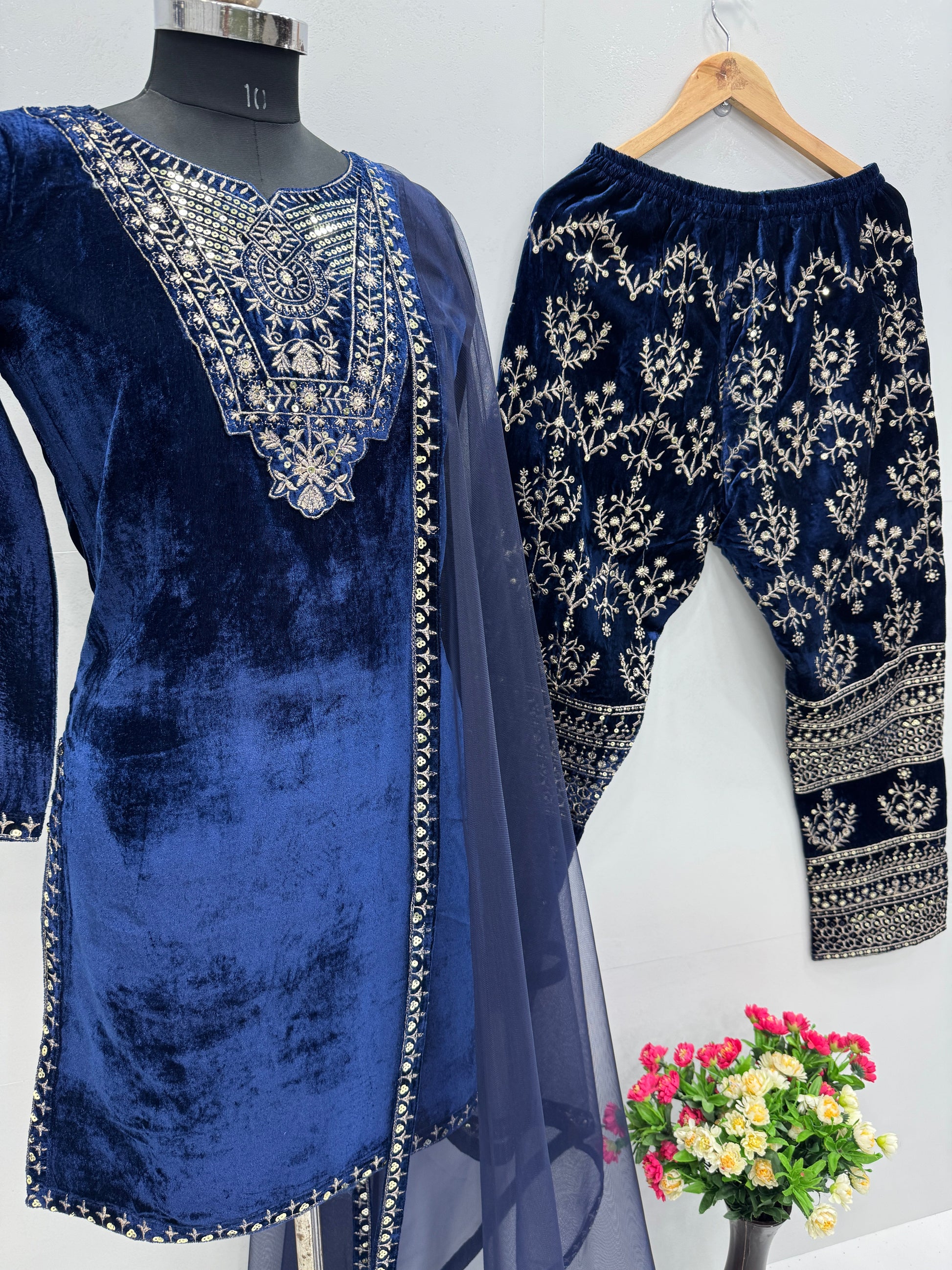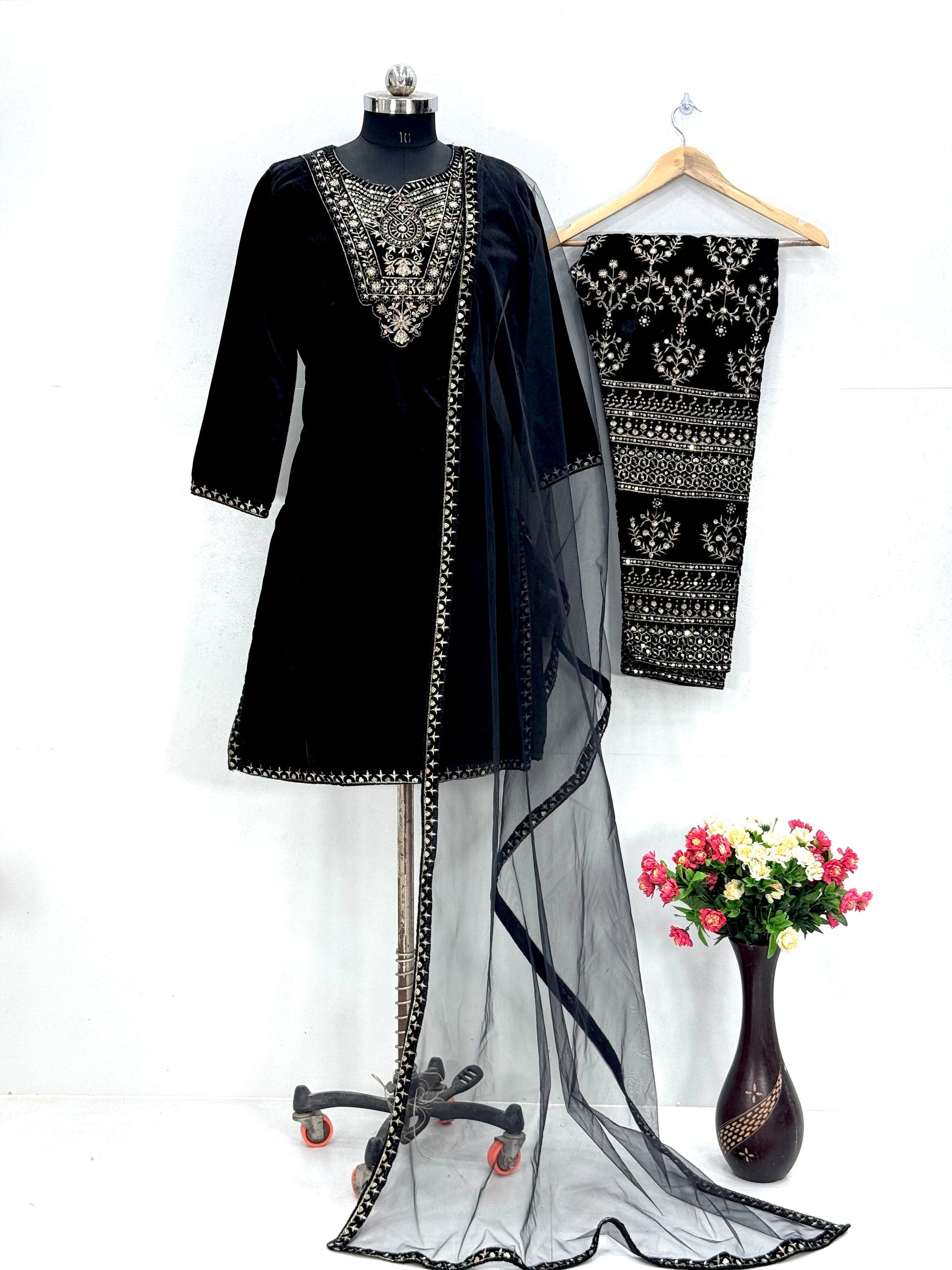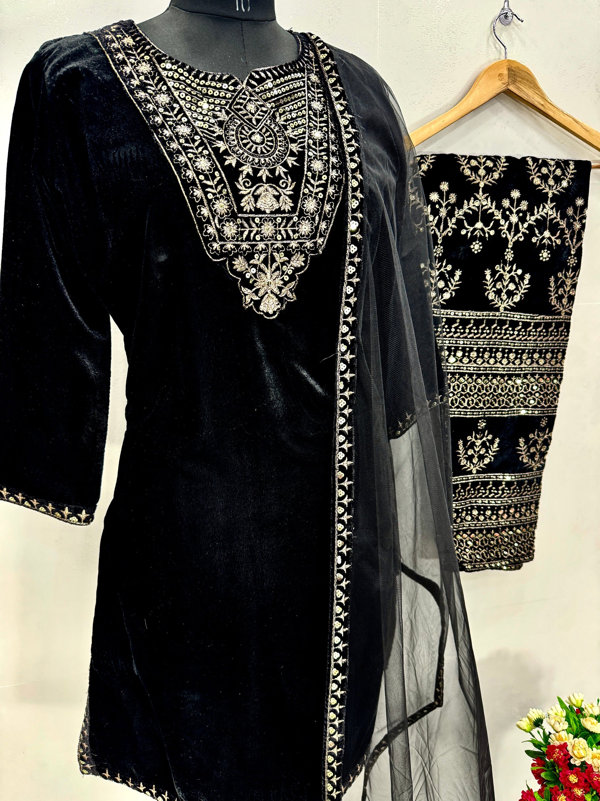 *DESIGNER WEAR HEAVY VISCOSE VELVET TOP WITH HEAVY WORK PLAZZO*