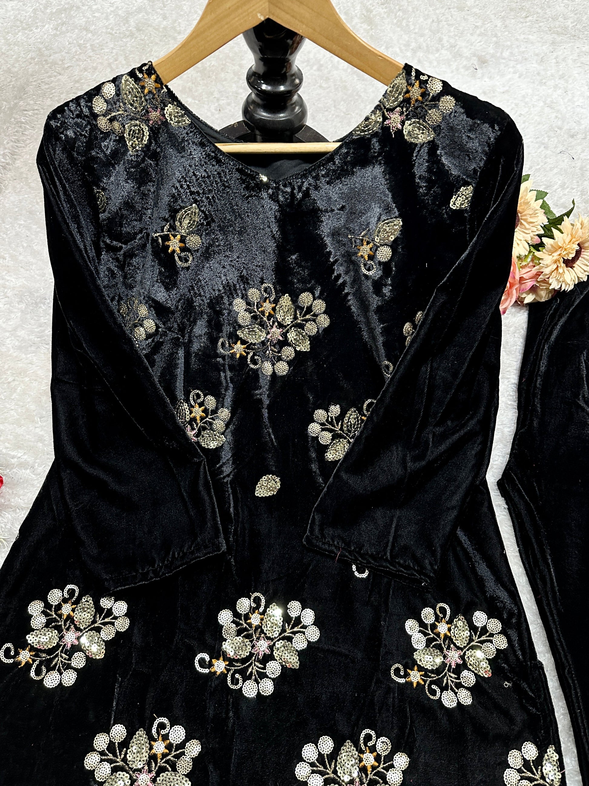 *#TOP FABRIC* : HAVY VISCOS VELVET WITH HAVY EMBRODAY 5 MM SIQVAS WORK