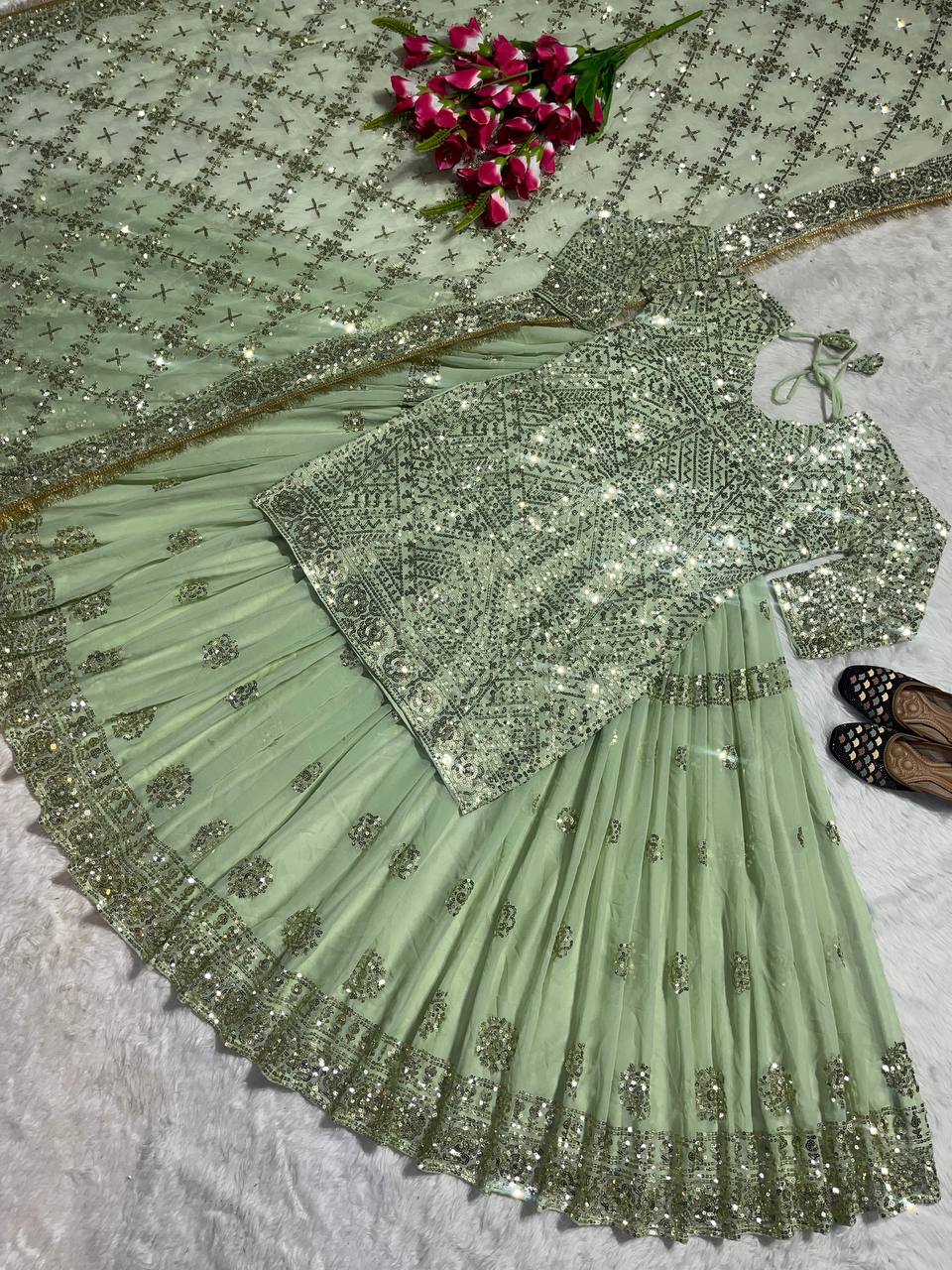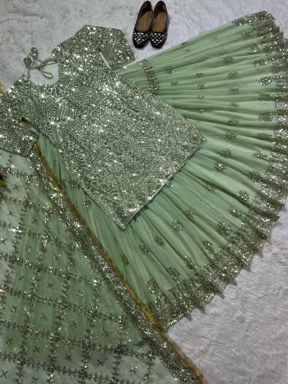 *Dupatta Fabric* :- Faux Georgette With 5mm Sequence Fancy Border Work (dupatta size 2.30 meter)