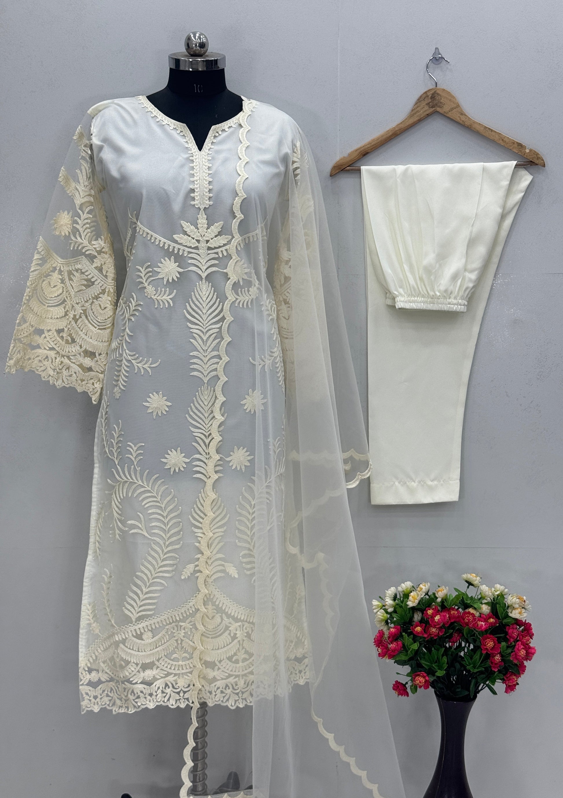 Beautiful Party Wear Top Pent And Dupatta With Embroidery Work