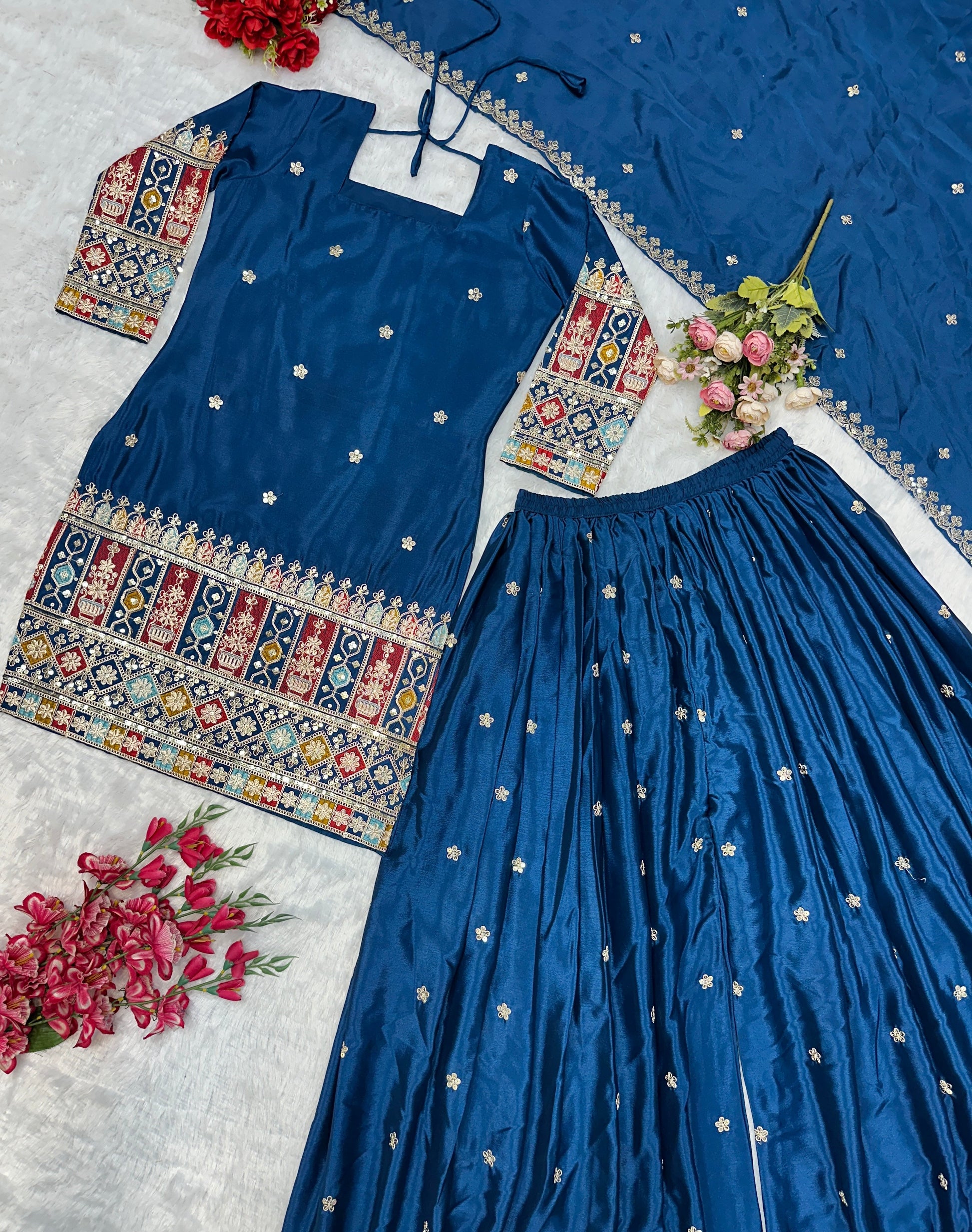 *NEW DESIGNER PARTY WEAR TOP AND PLAZZO. WITH FANCY DUPPATA AND EMBROIDERY WORK*