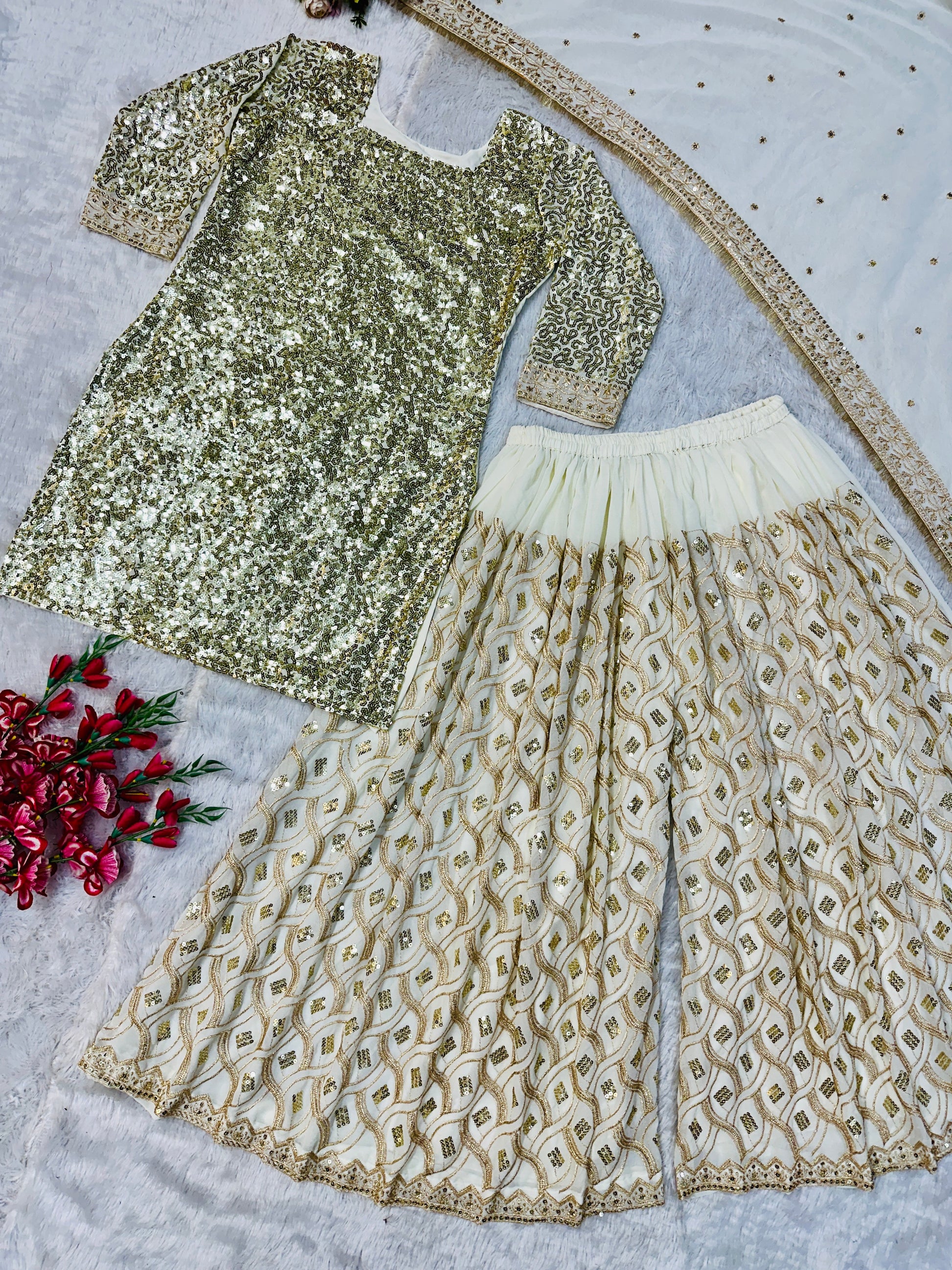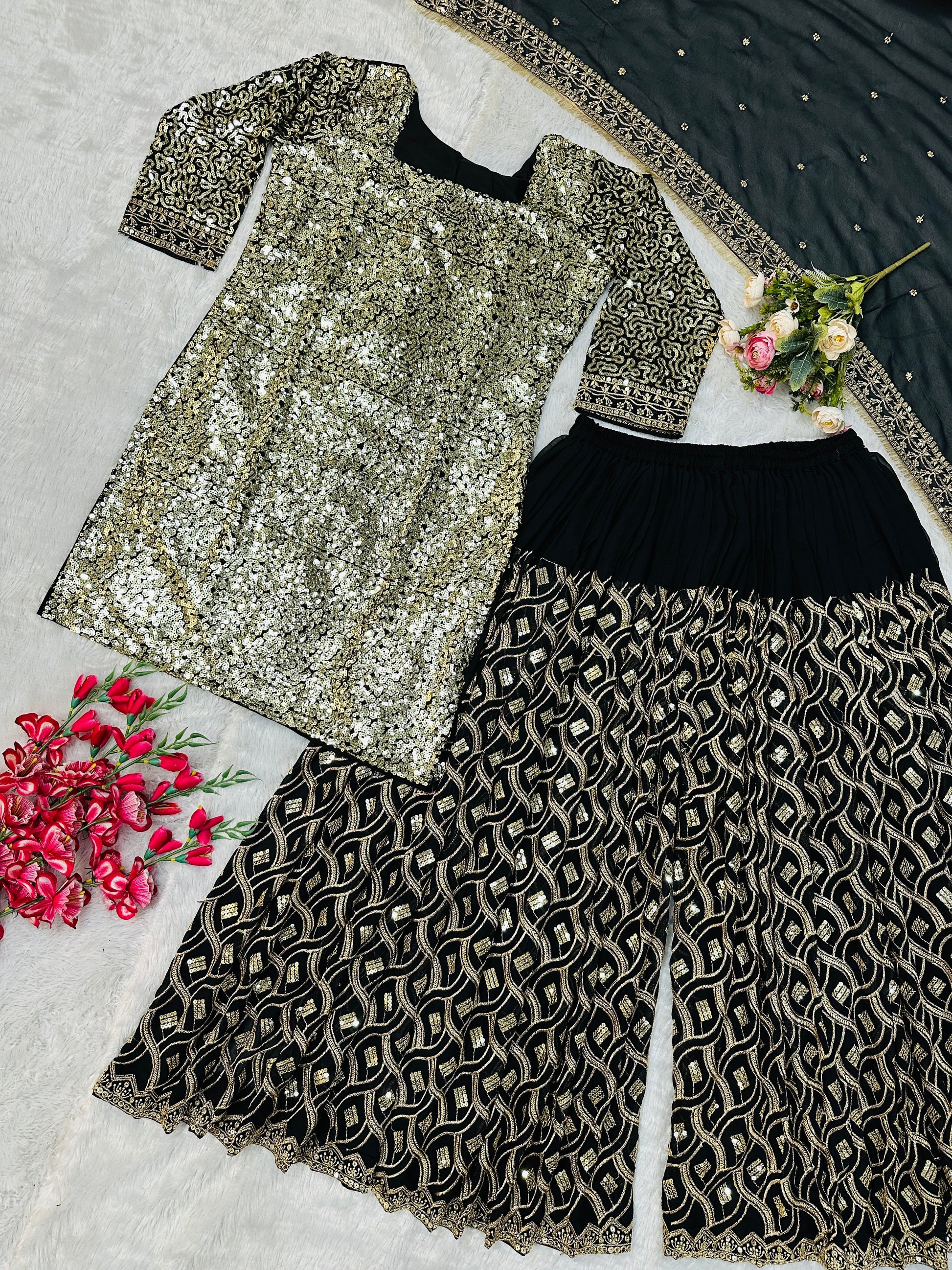 Beautiful Party Wear Top Plazzo And Dupatta With Embroidery Work