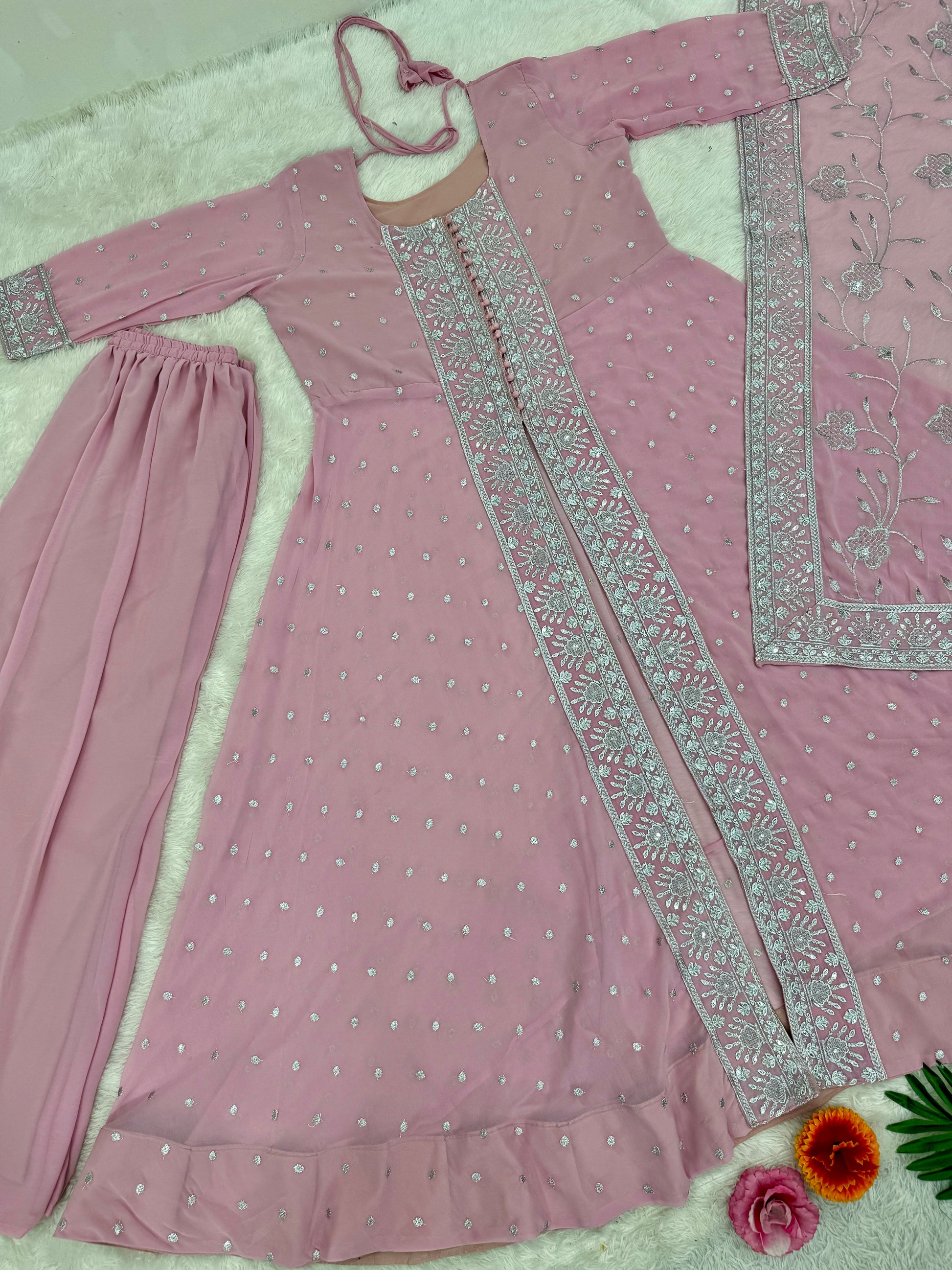 DESIGNER HEAVY EMBROIDERED SEQUINS WORK 3 PIS SUIT SET*