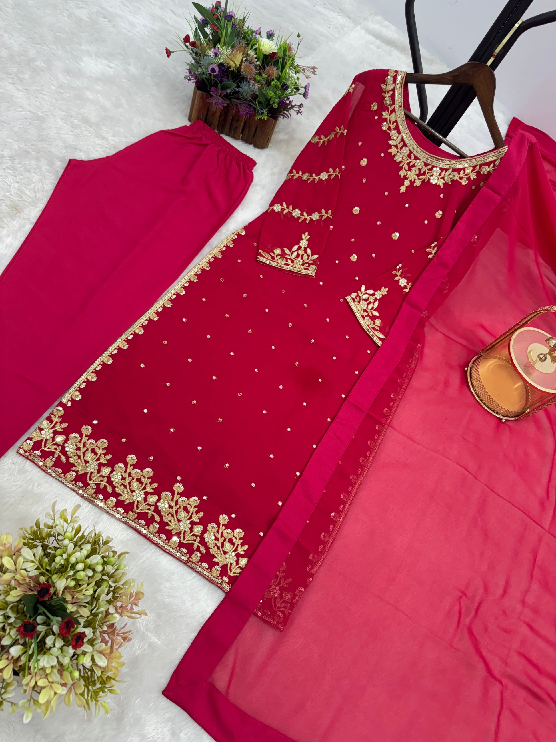 Beautiful Top-Bottom And Dupatta With Embroidery And Sequins Work
