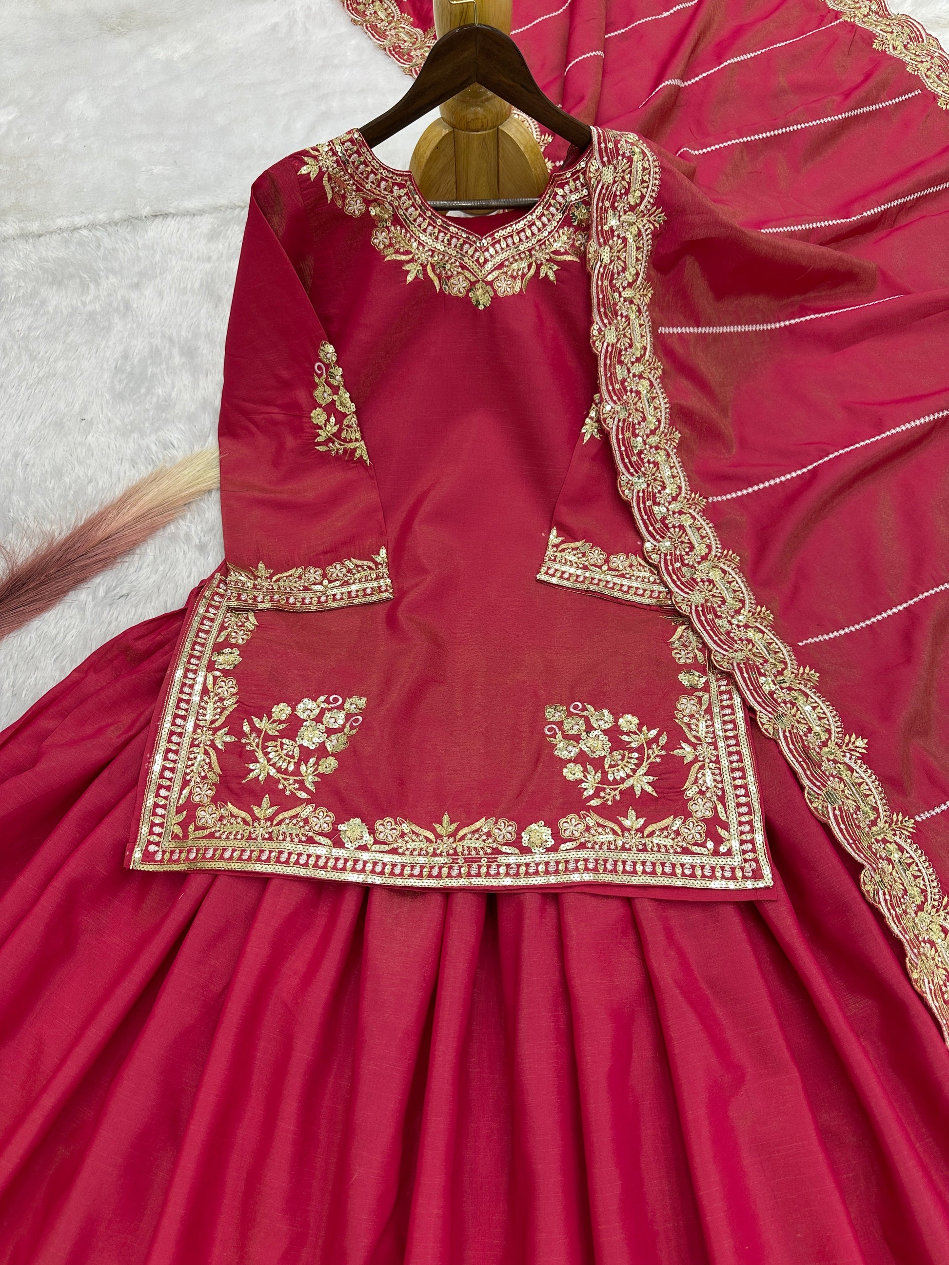 *Lunching Trending Collection Ready To Wear In Embroidery And Sequins Work Beautiful Top - Lehenga With Heavy Dupatta*