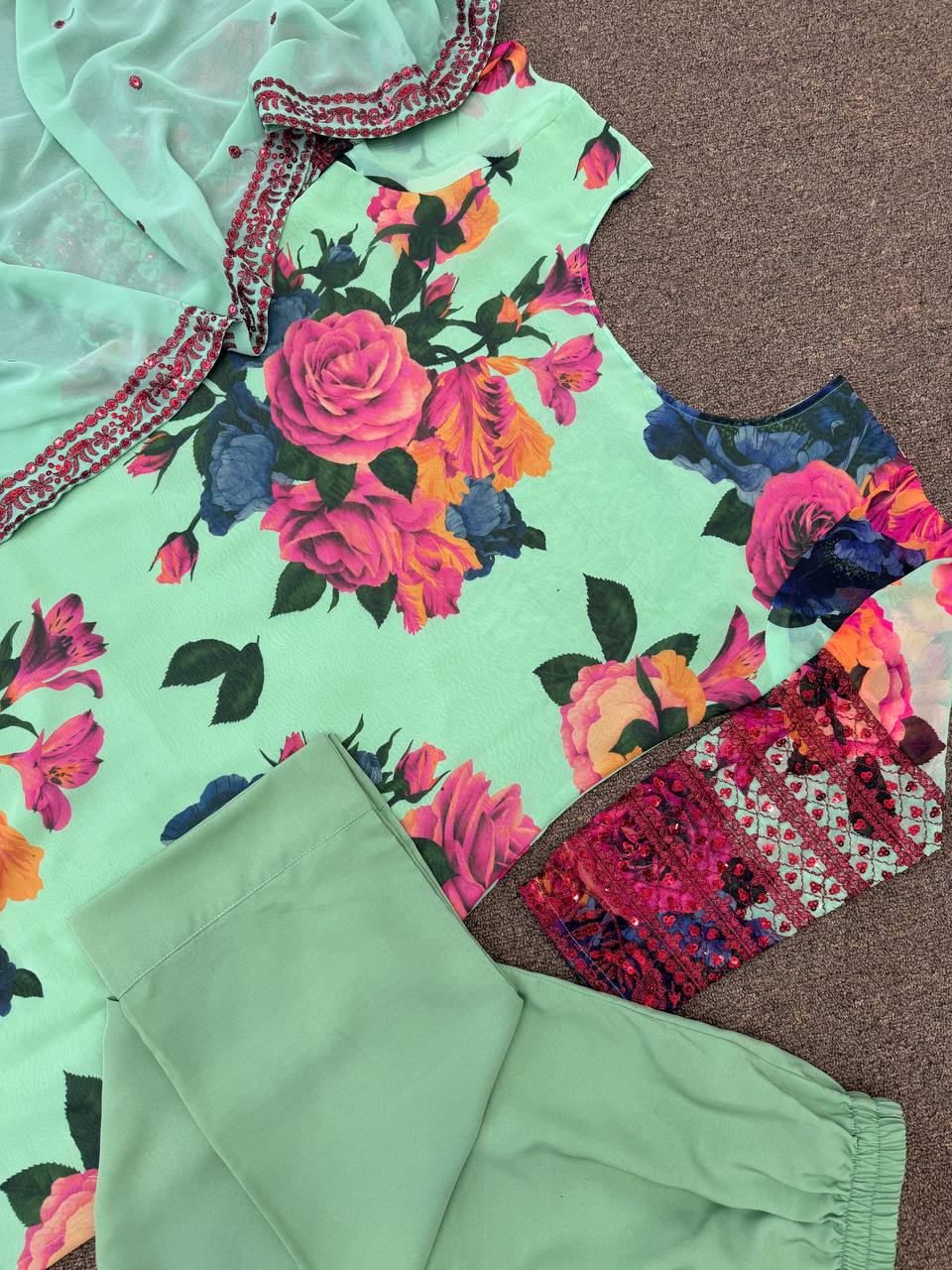 PRESERNTING NEW FANCY DIGITAL PRINT AND EMBROIDERY 5MM SEQUENCE WORK TOP BOTTOM WITH DUPATTA *