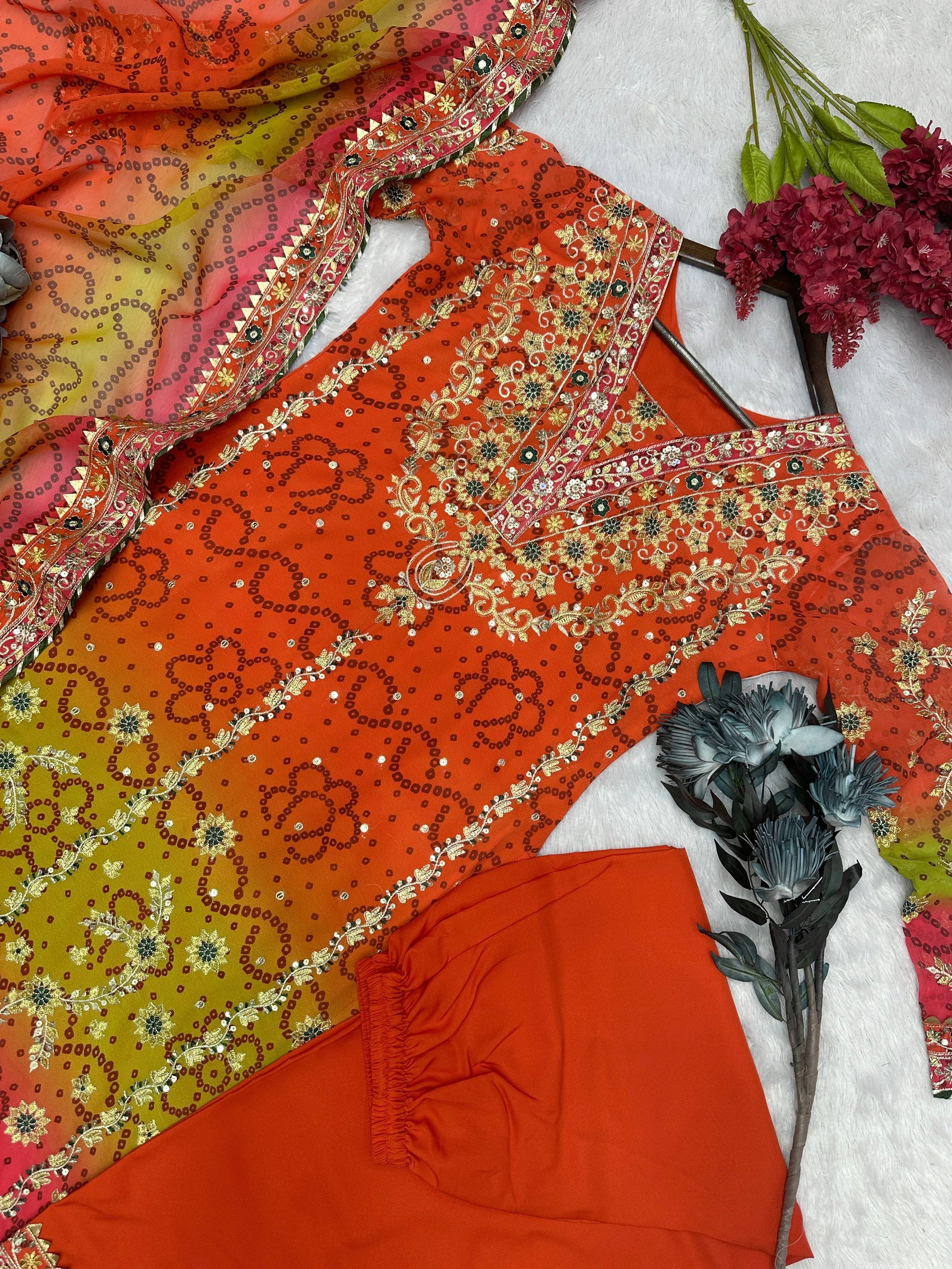 *# Top Work* : Fancy Digital Print With Heavy Embroidery And Sequins Work