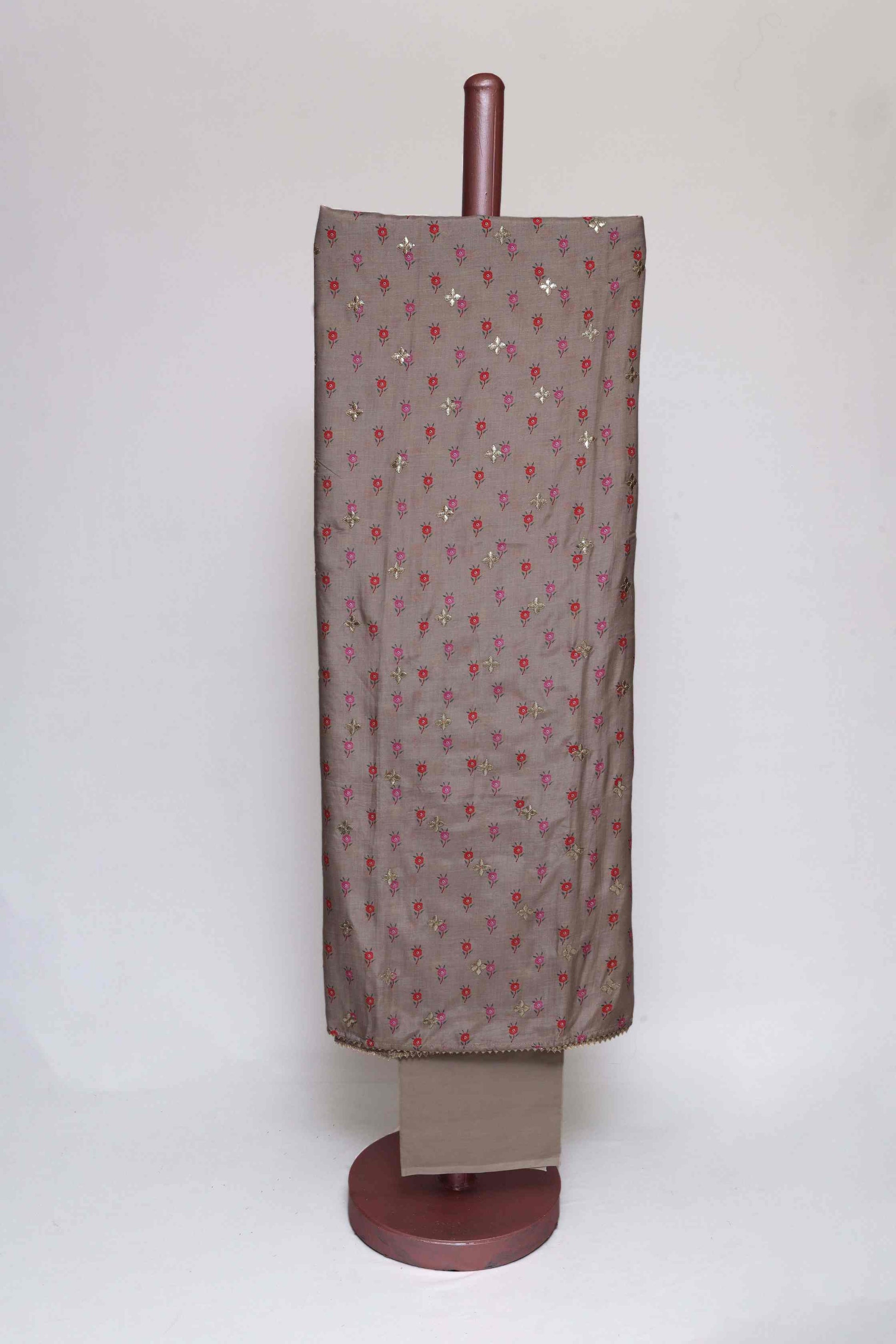 BEIGE PRINTED MODAL SILK UNSTITCHED SUIT SET