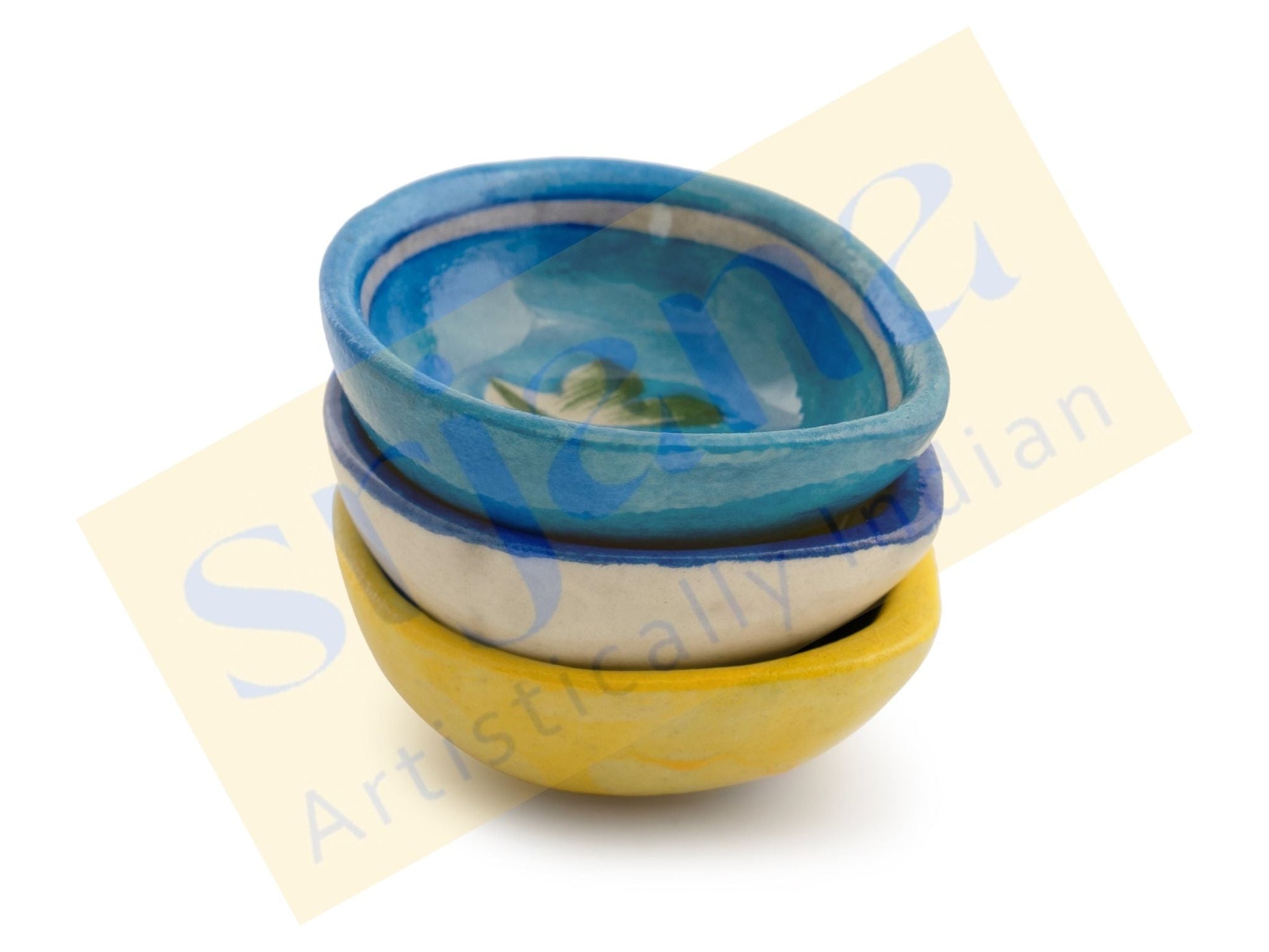 Illuminate your space with these exquisite Blue Pottery Diyas, featuring vibrant hand-painted floral motifs and a classic handcrafted finish. Perfect for festivals, poojas, or as decorative accents, these diyas bring a warm and artistic charm to any setting.