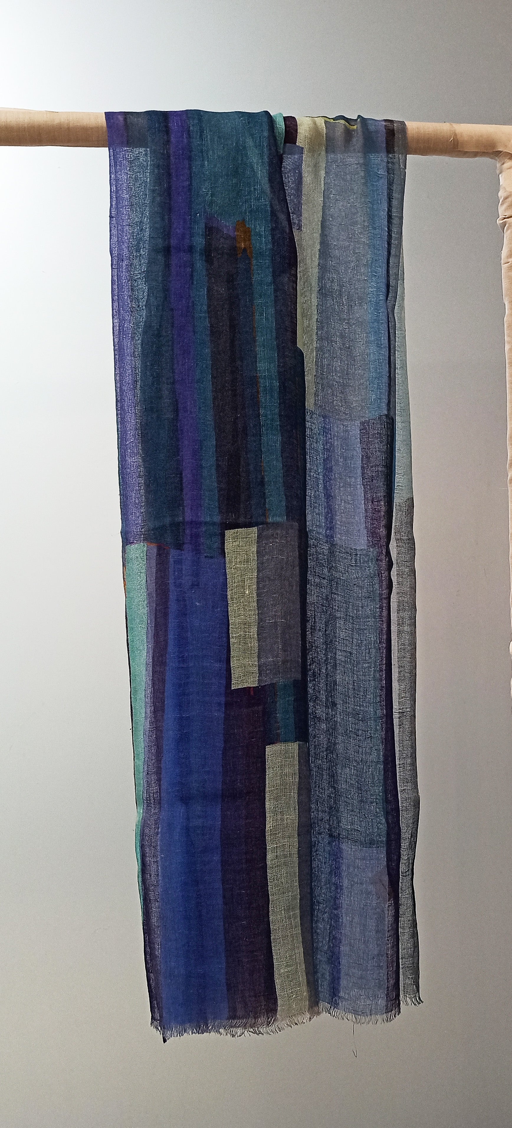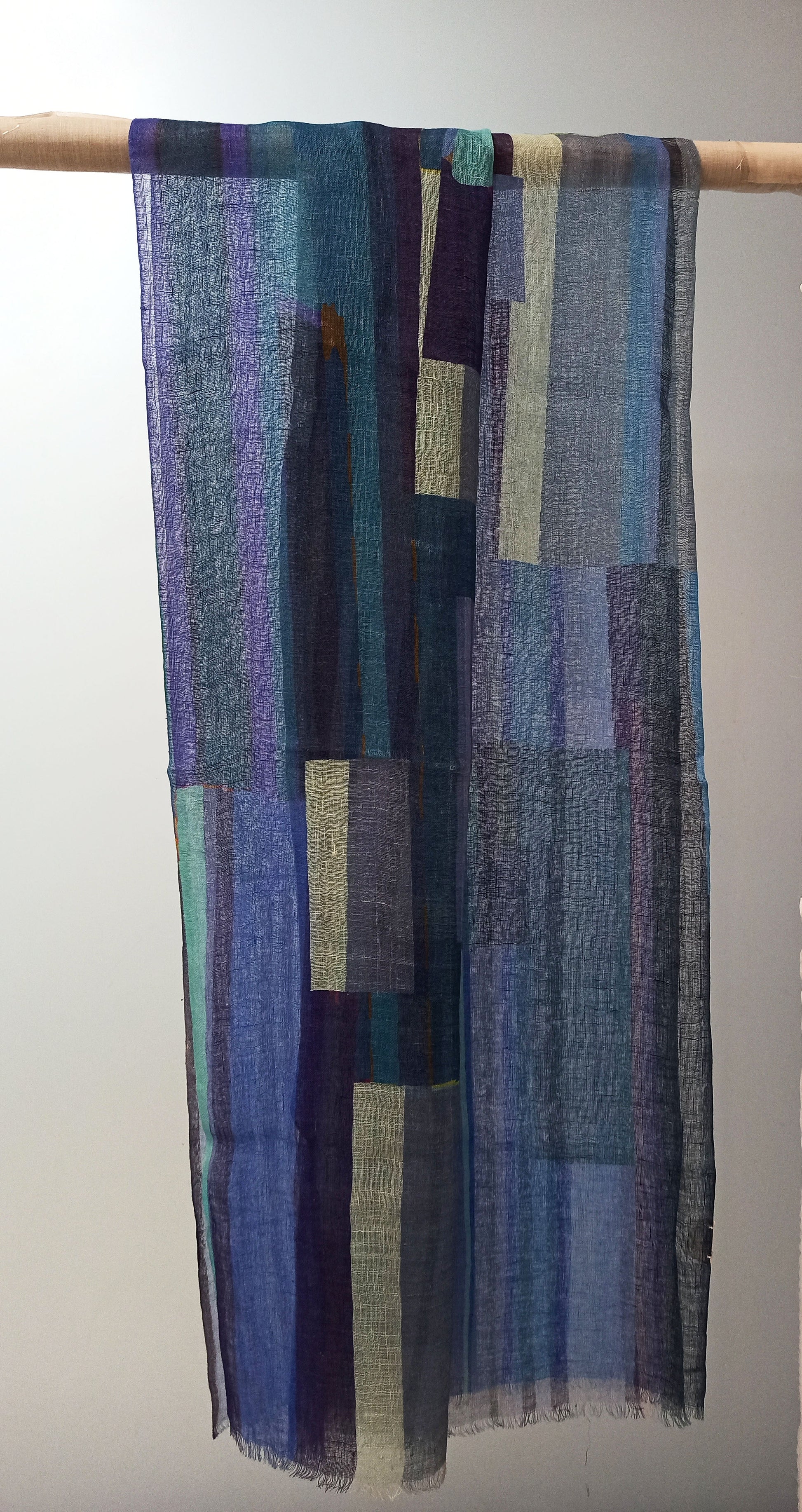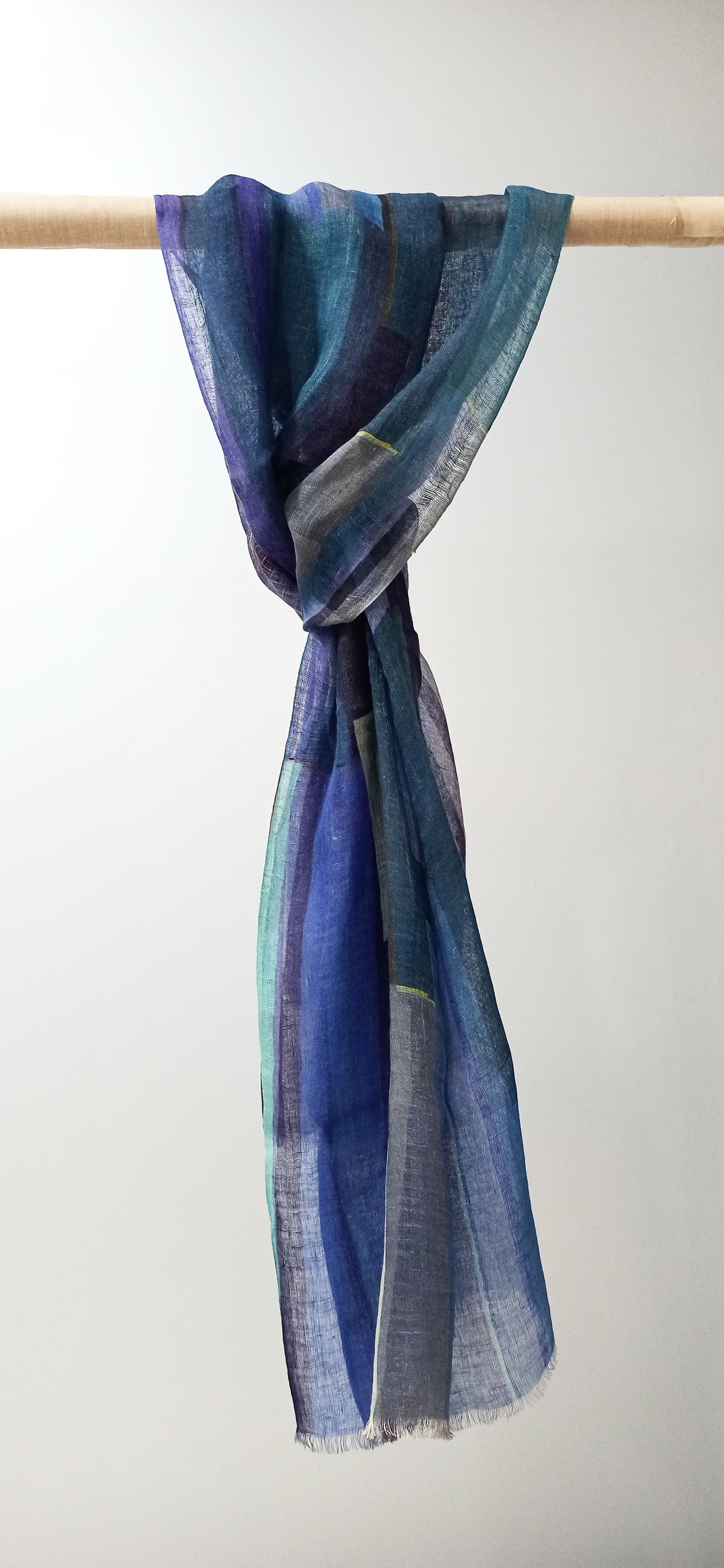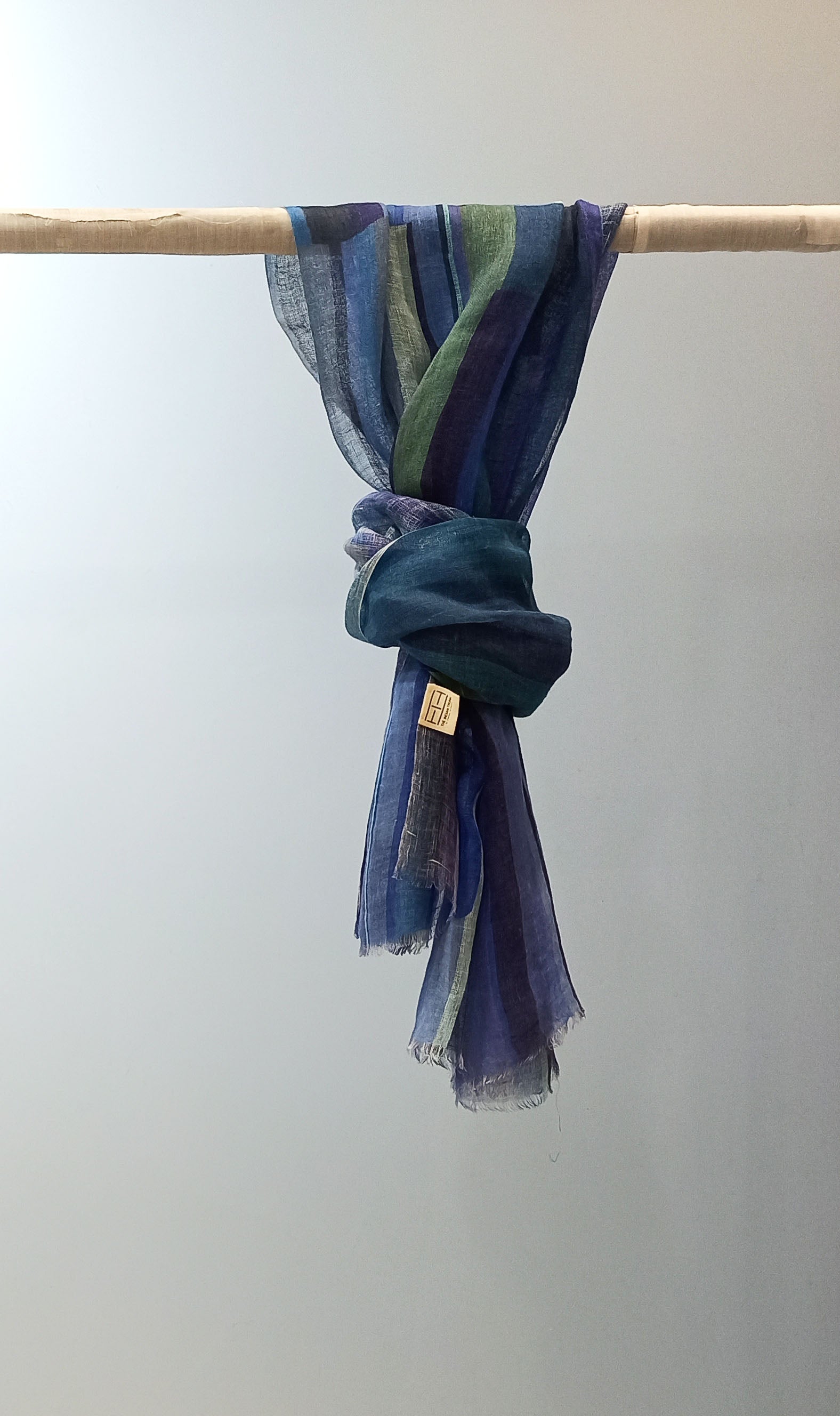 Spectrum-inspired scarf crafted from Cotton Linen with hues of soothing blues that can bid goodbye to your Monday blues!