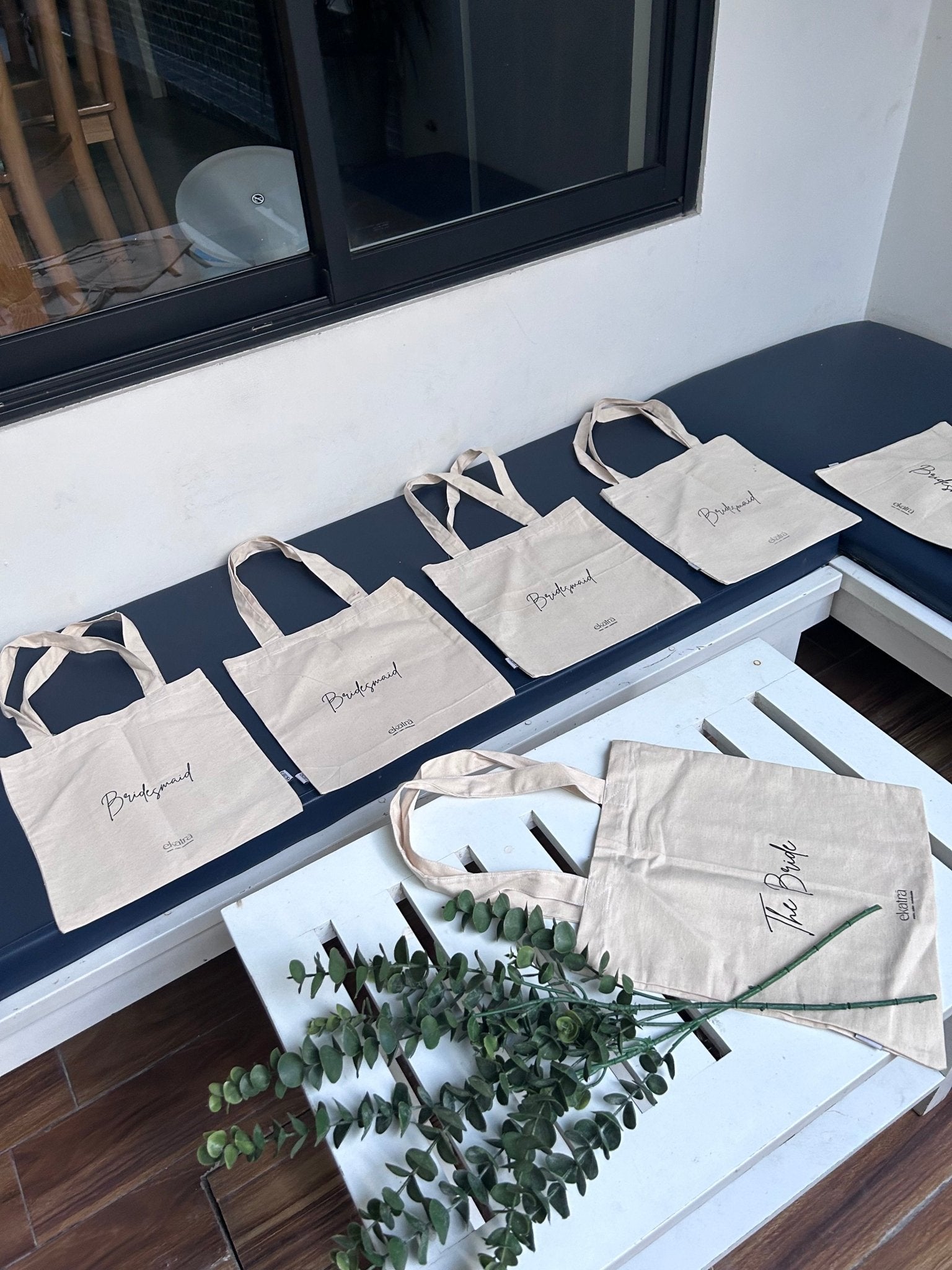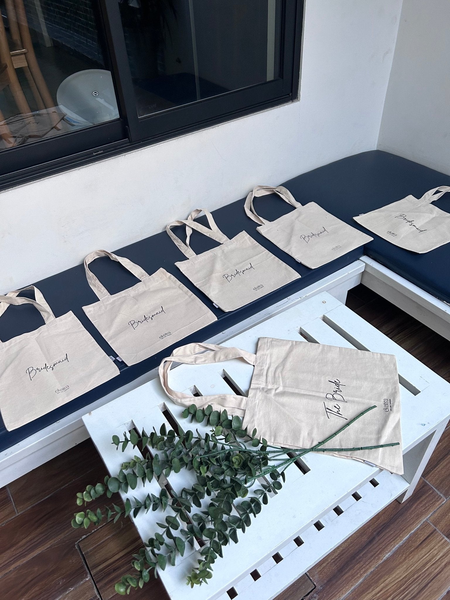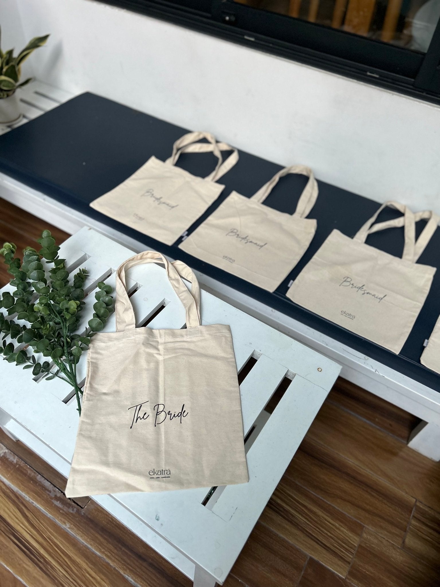 Our Bride & Bridesmaids Tote is a must-have for bridal parties! Handmade with 100% woven cotton, this tote is perfect for holding all the bridal surprises for the entire party!
