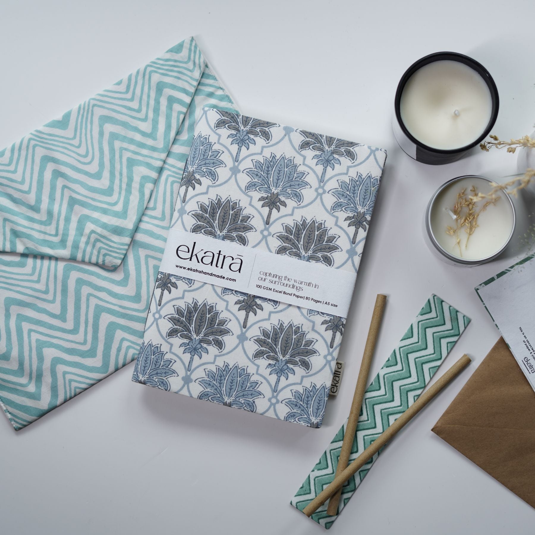 This Bundle is curated beautifully inside a cloth envelope in assorted prints with all your journaling needs :)