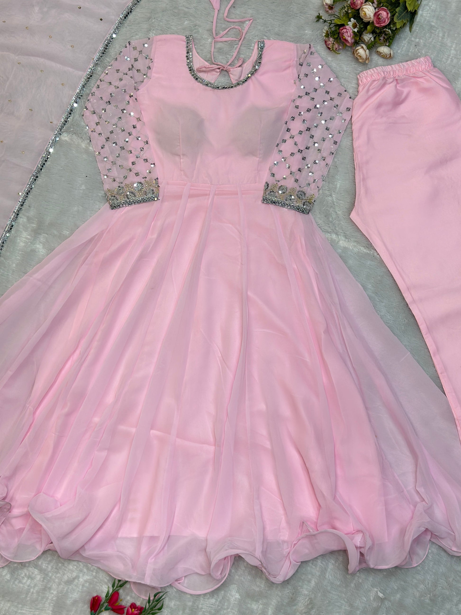 *GOWN FABRIC* :HAVY FOUX GOARGATE WITH EMBROIDERY WORK AND FULL SLEEVES