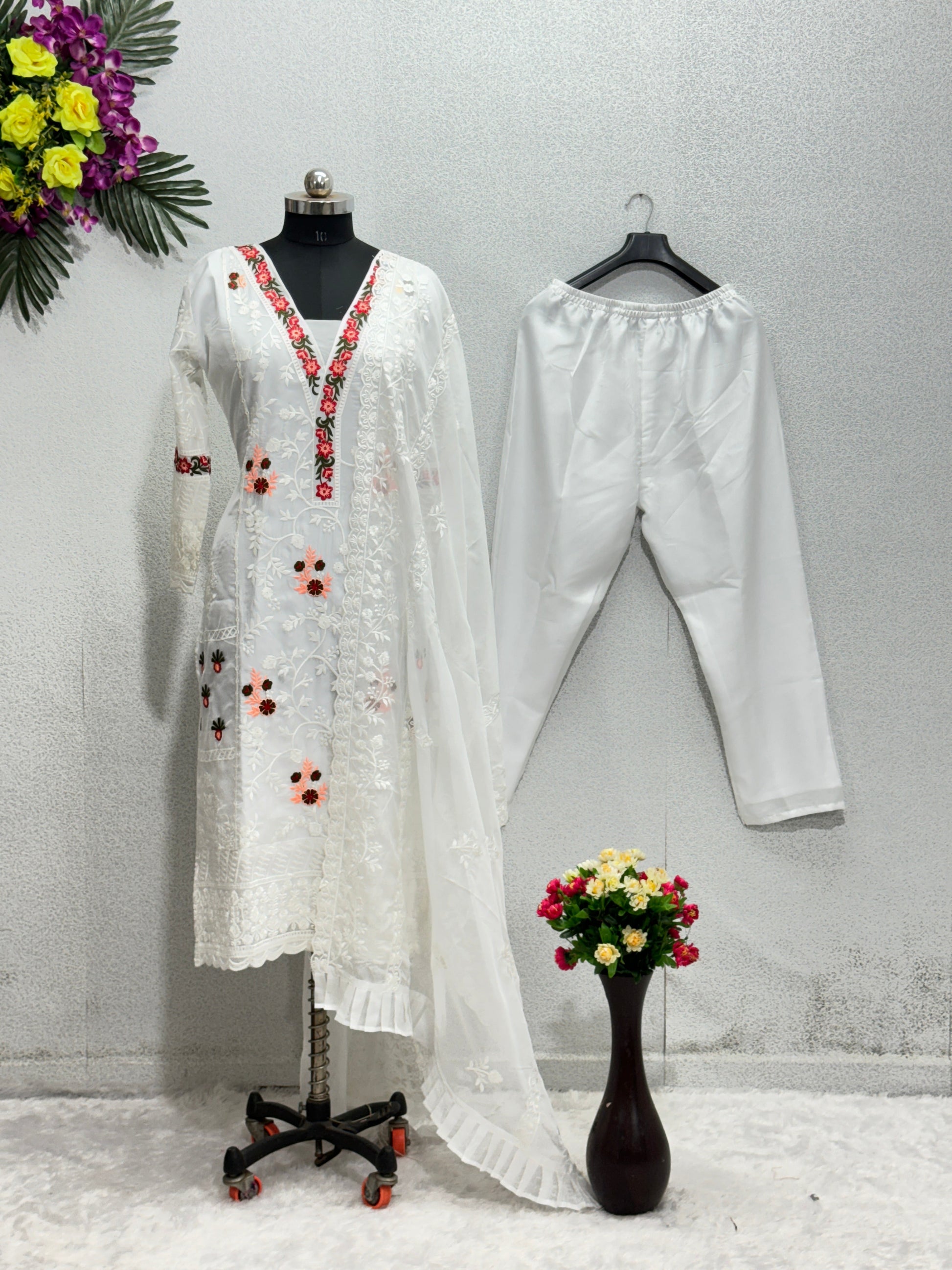 Designer Beautiful Top Pent And Dupatta With Embroidery Work