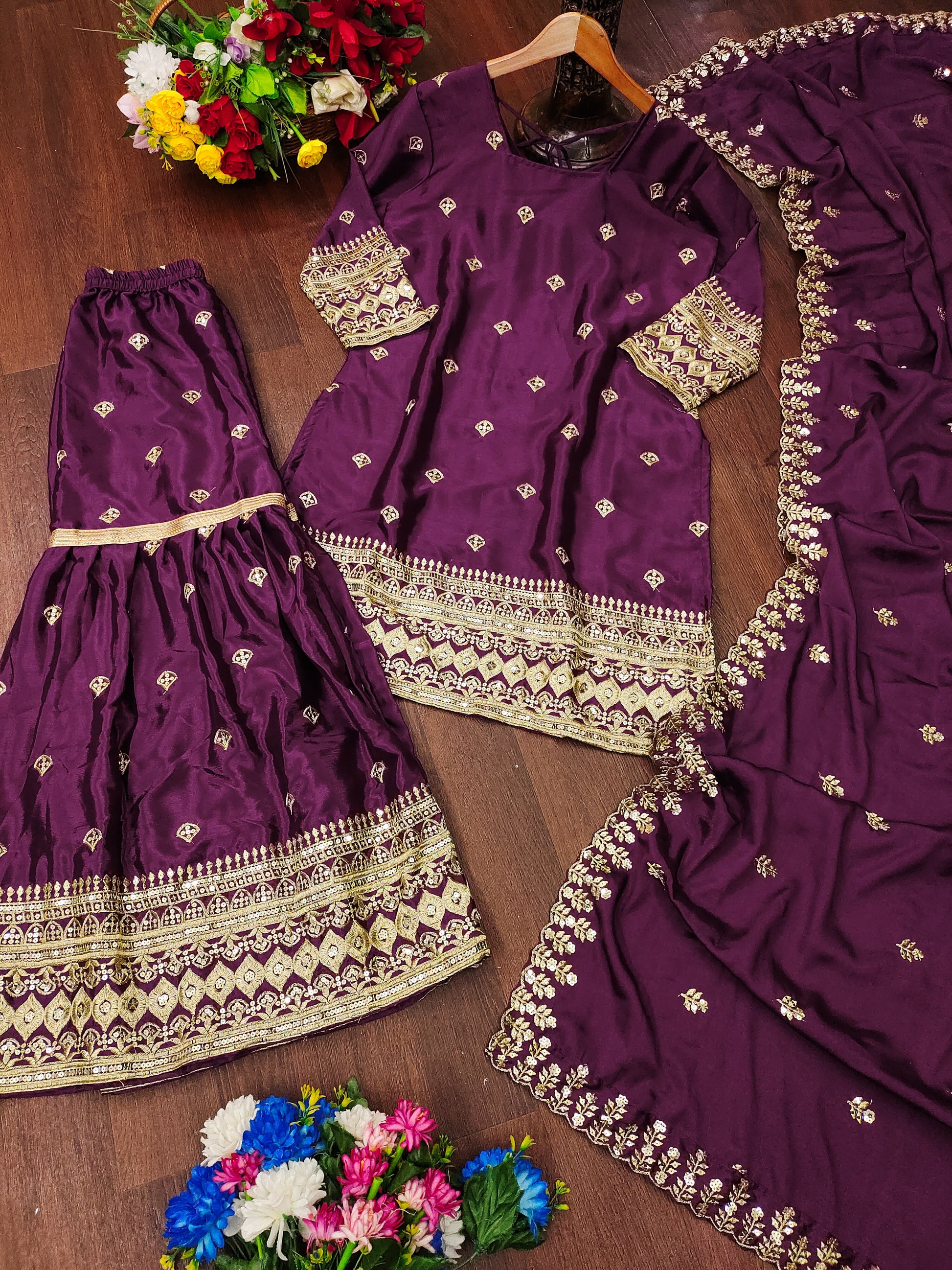 Presenting New Designer Embroidered Chinon Suit With Sequence Embroidered Work