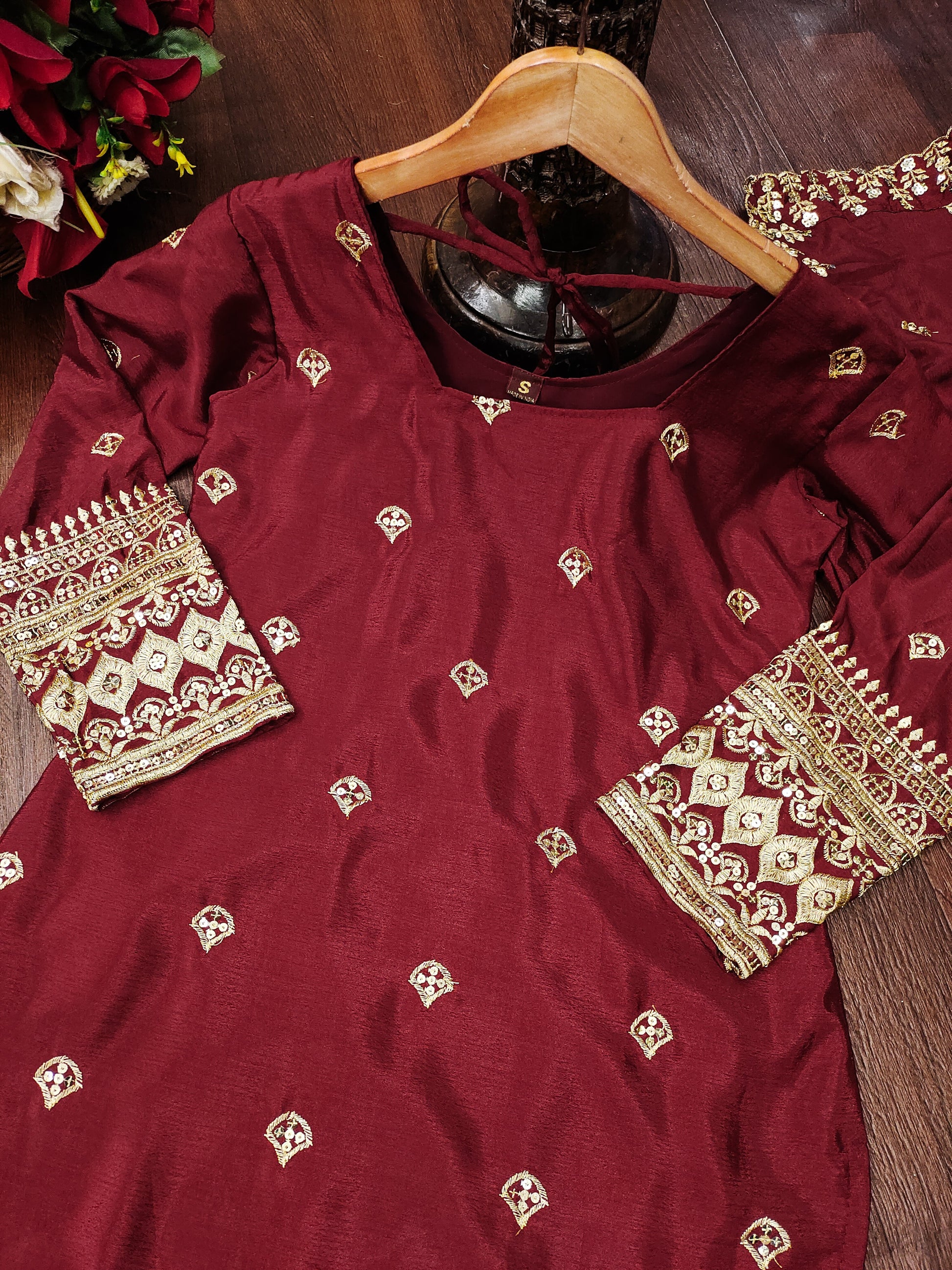Designer Embroidered Chinon Suit With Sequence Embroidered Work