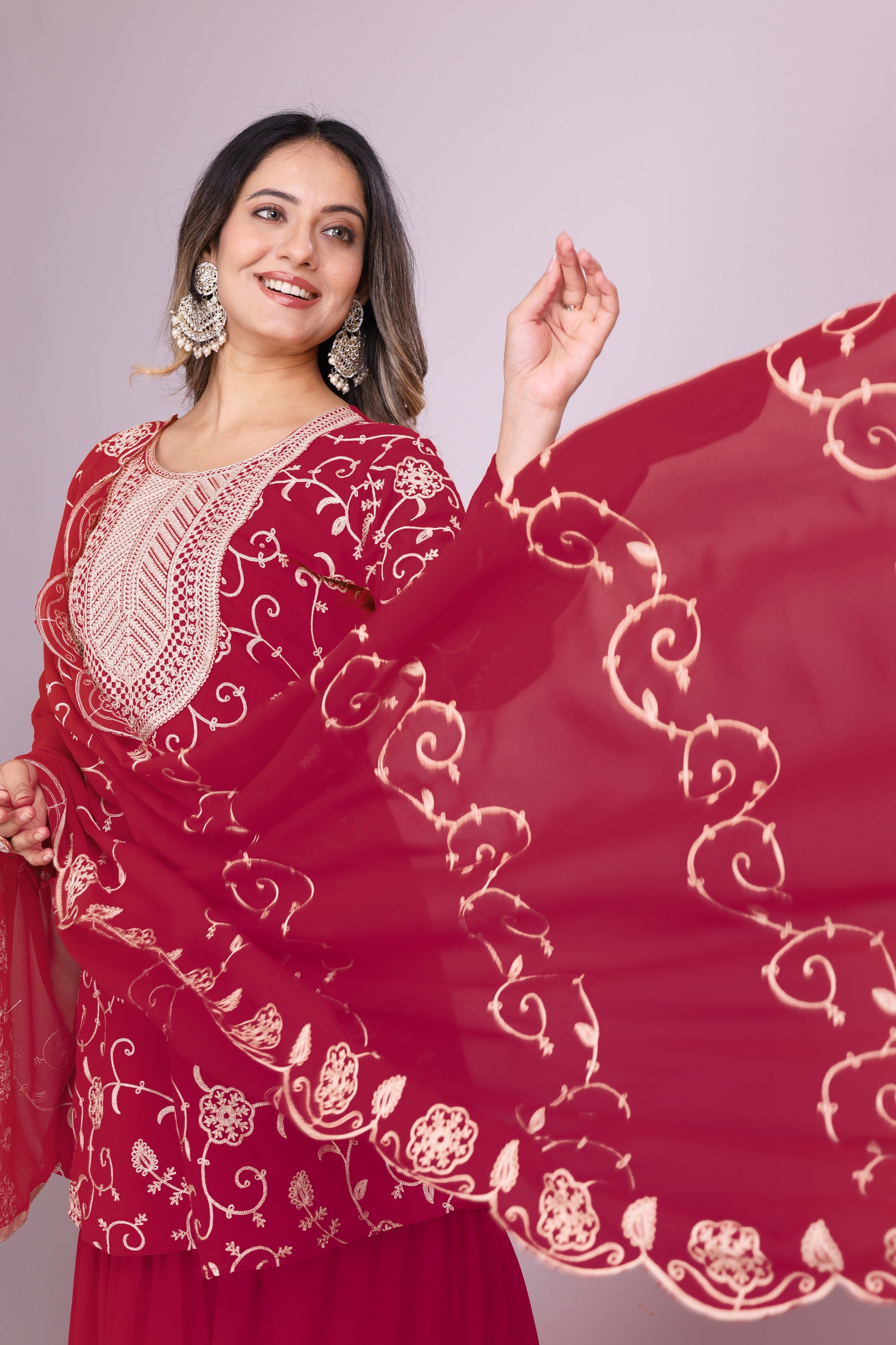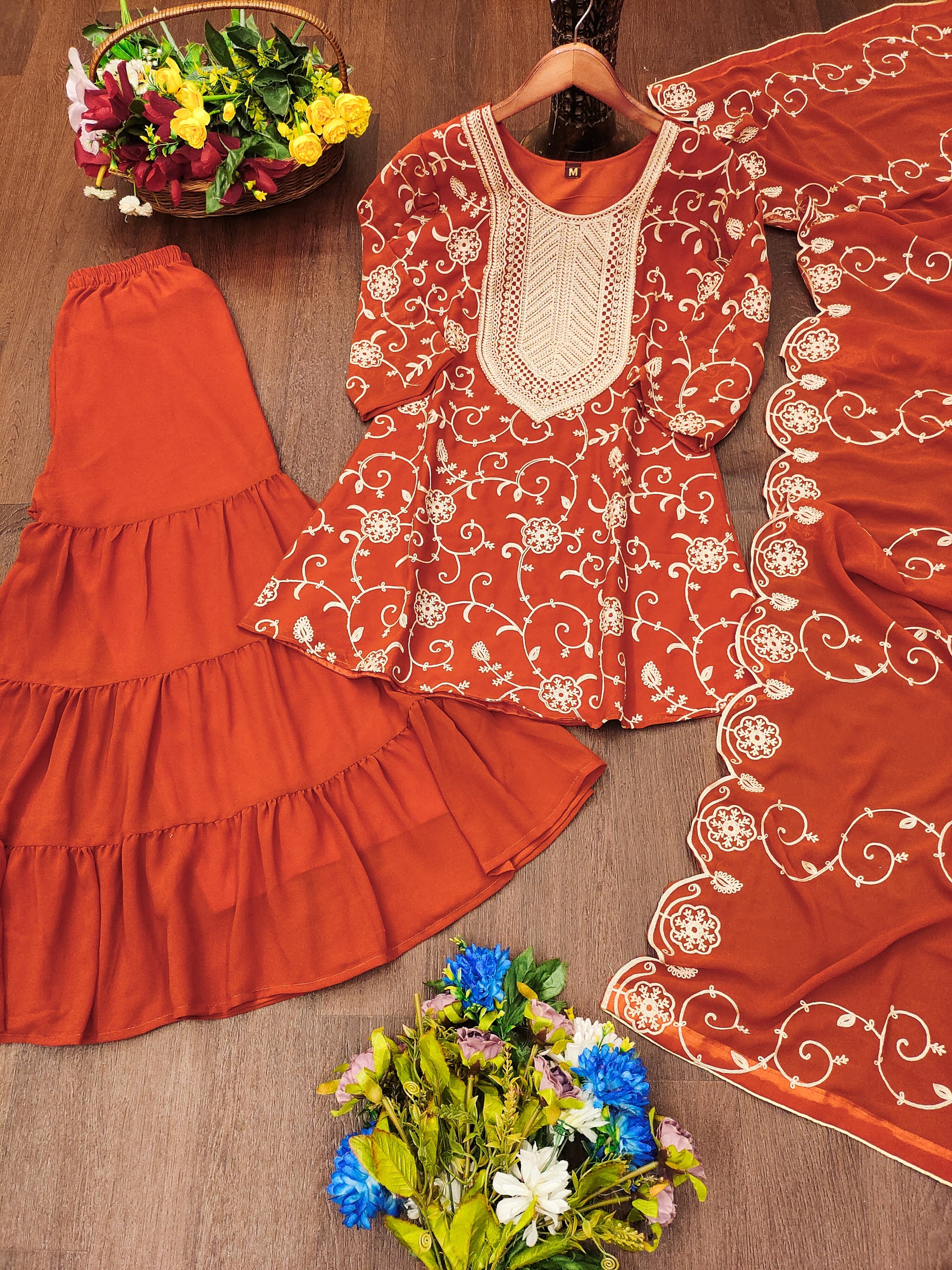 Designer Embroidered Georgette Sharara Suit With Dupatta