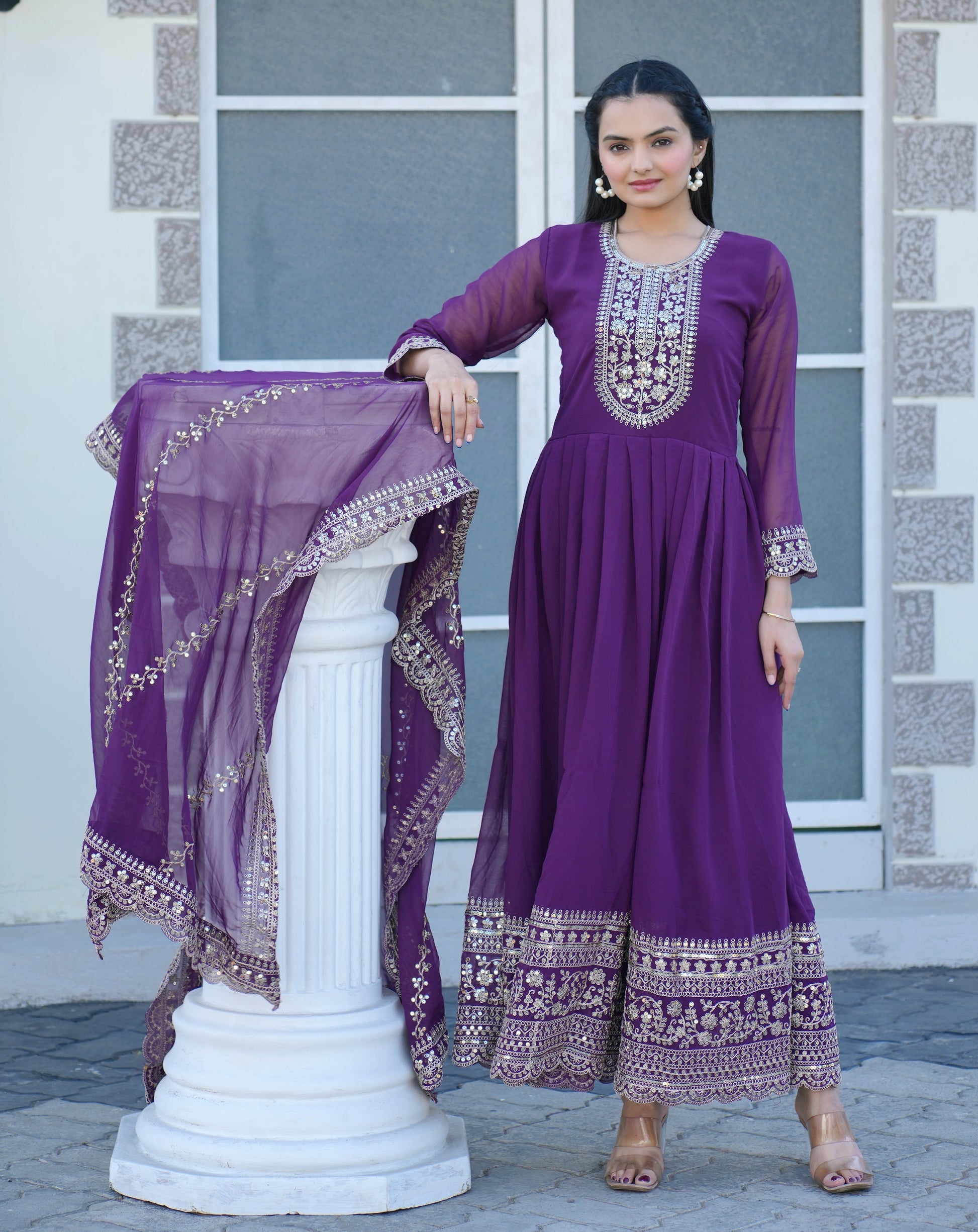 Presenting New Designer Embroidered Gown With Coding Sequence Embroidered Work