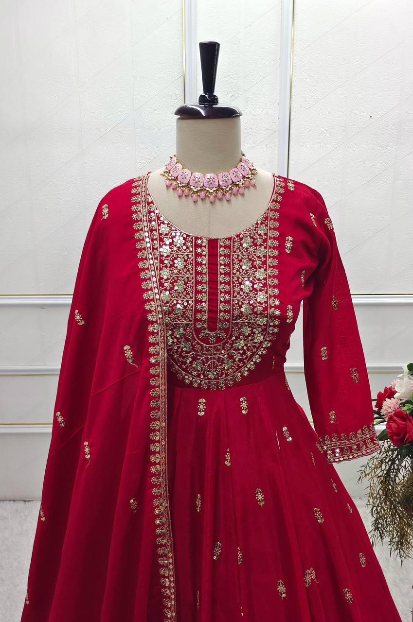 Presenting New Collection Heavy Chinon Silk Gown -Pent Dupatta Set Fully Stitched Ready To Wear