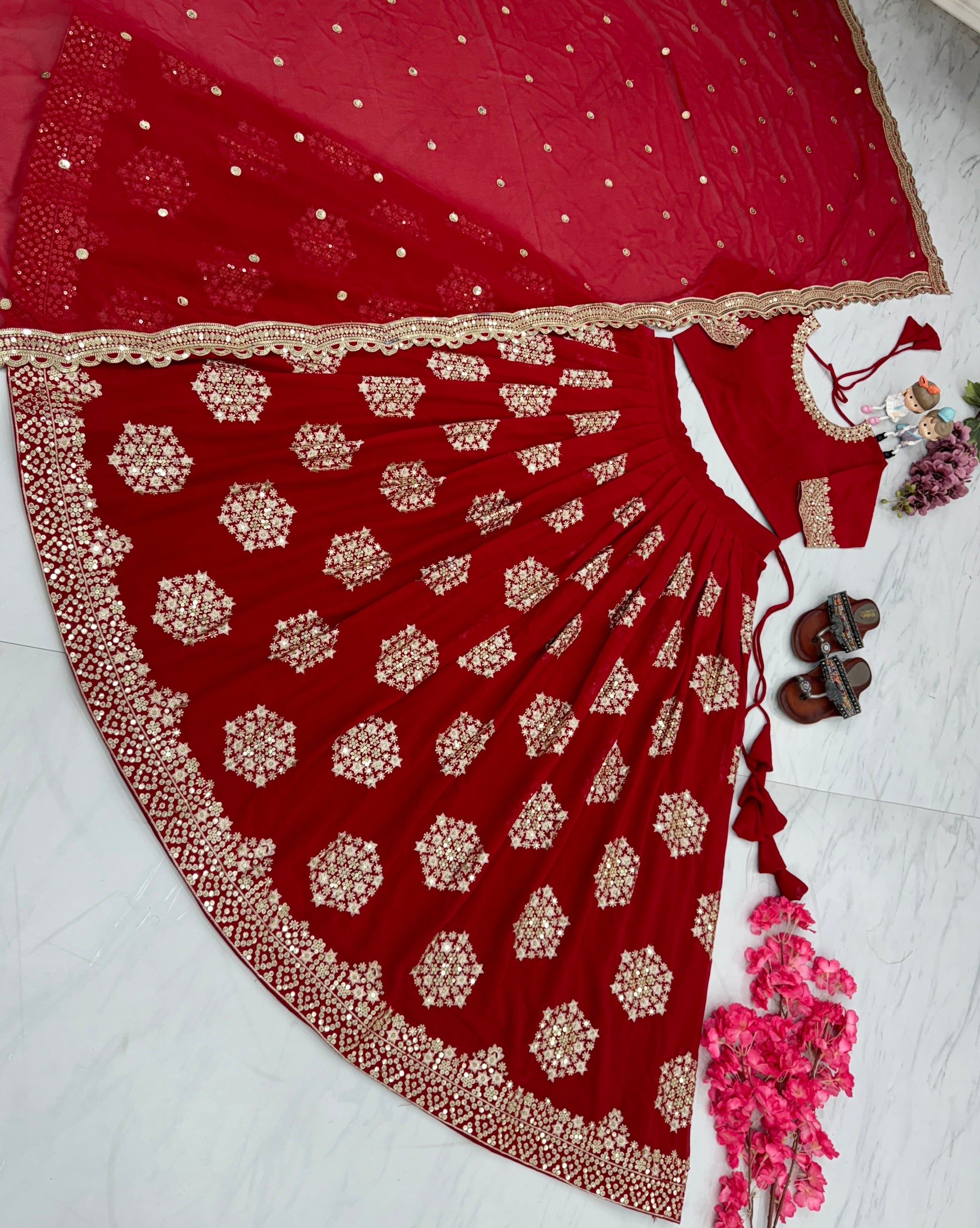 *Lehenga Fabric :* Heavy Faux Georgette With Heavy Embroidery 5 mm Sequence Work *(Canvas patta)*