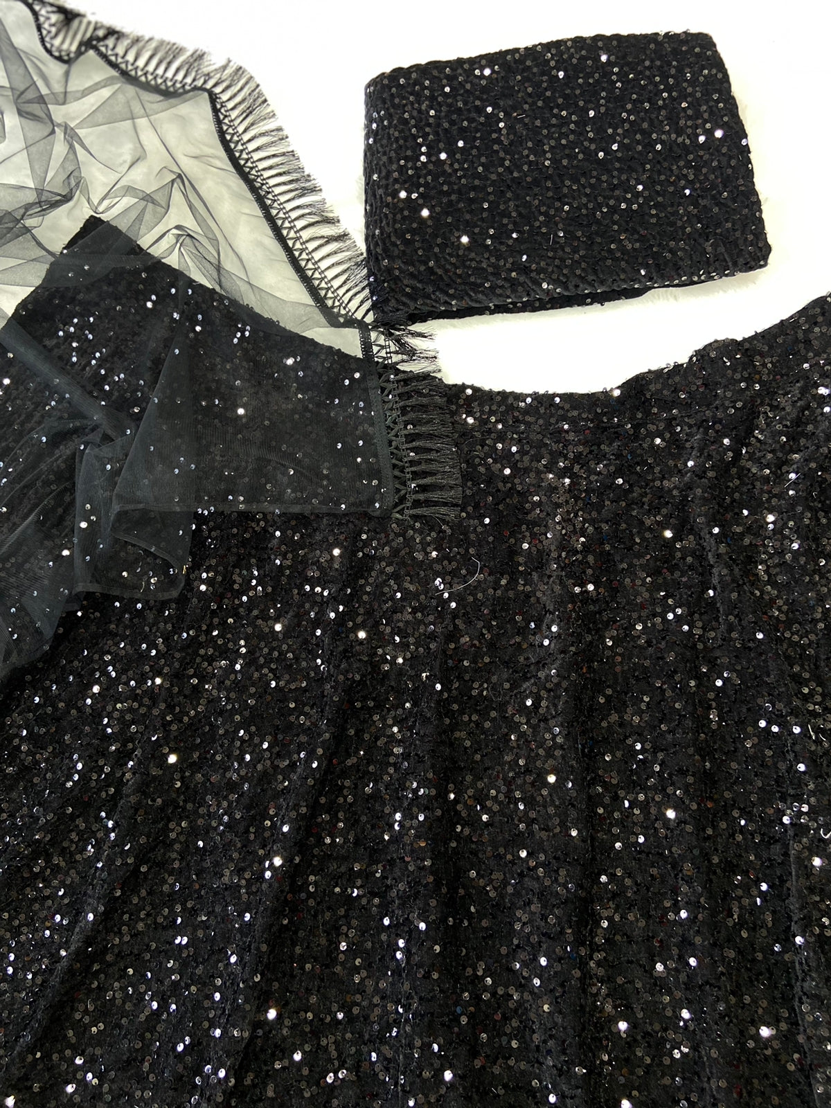 Blouse : *Premium Velvet With Heavy Sequins Work All Over*( 1 MTR Unstitched Fabric )