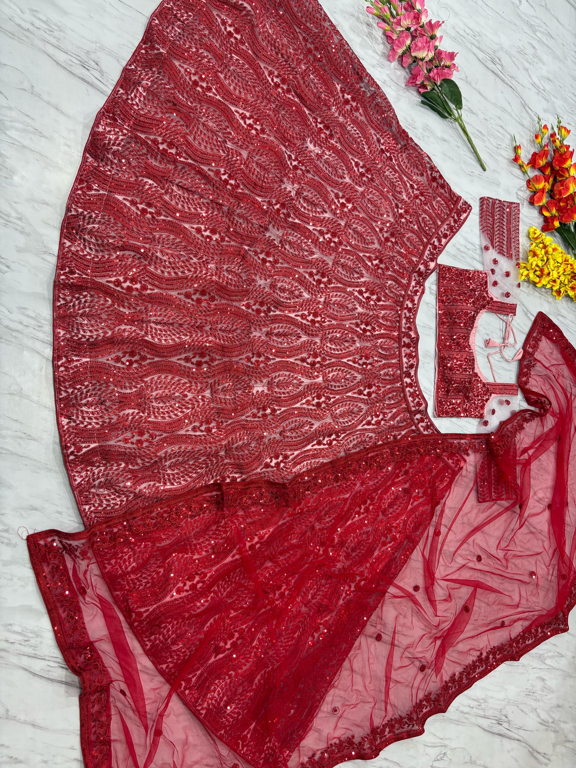 Lehenga : *Premium Net Embellished With Beautiful Thread Embroidery , Beautiful Coding And Heavy Sequins Work With Heavy Cancan And Canvas With Double Inner Covering With Flair 3.5 MTR*( Semi Stitched Upto Xxl )