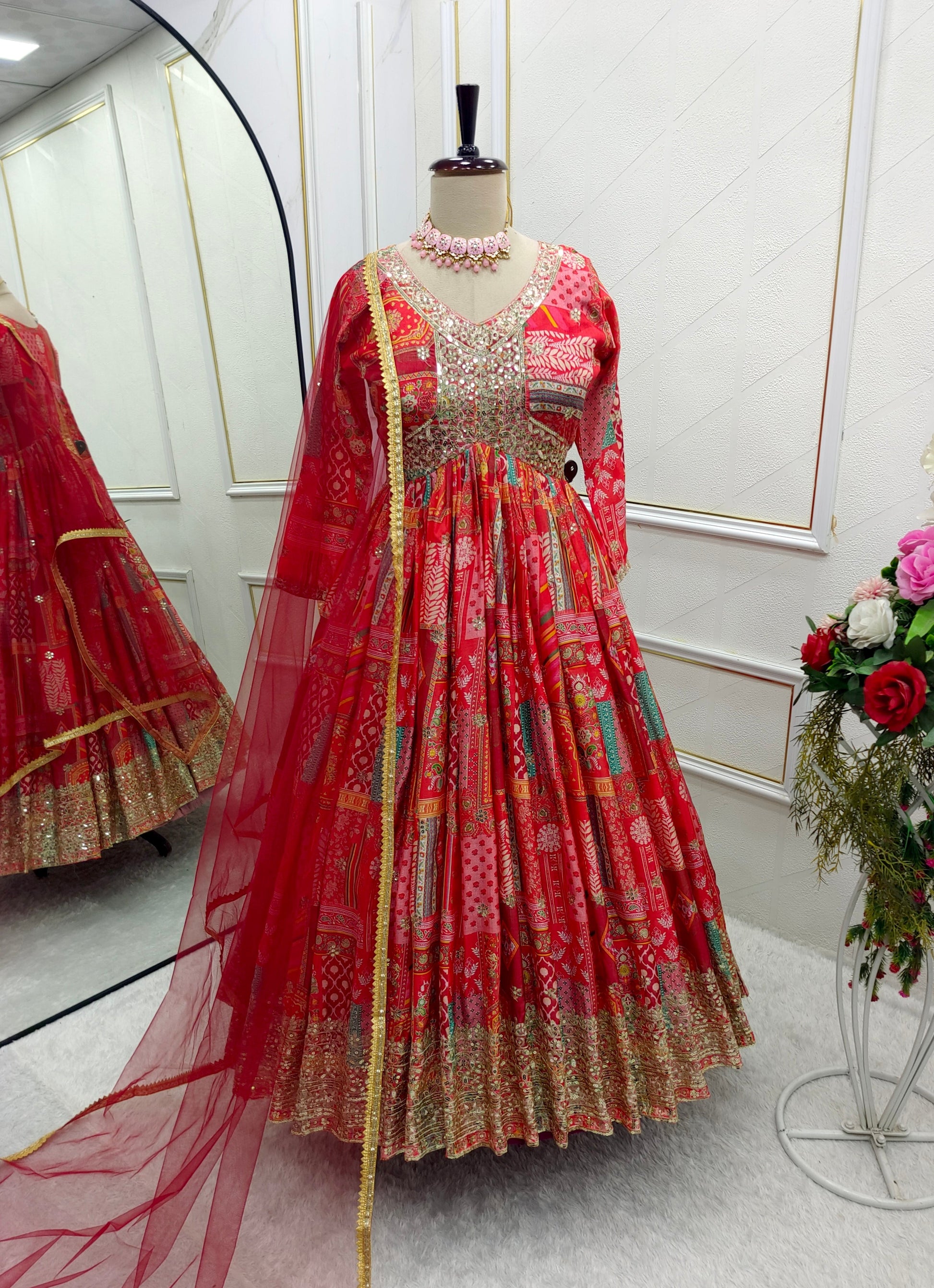 Presenting New Aliya-Cut Gown -Pent Dupatta Set Fully Stitched Ready To Wear