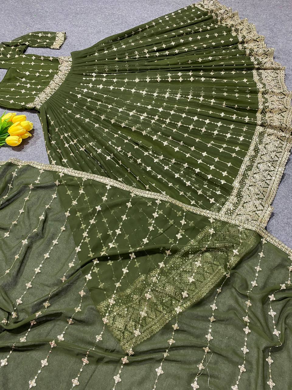 *GOWN FABRIC* :-_FOX GEORGETTE WITH EMBROIDERY WORK WITH SLEEVES_