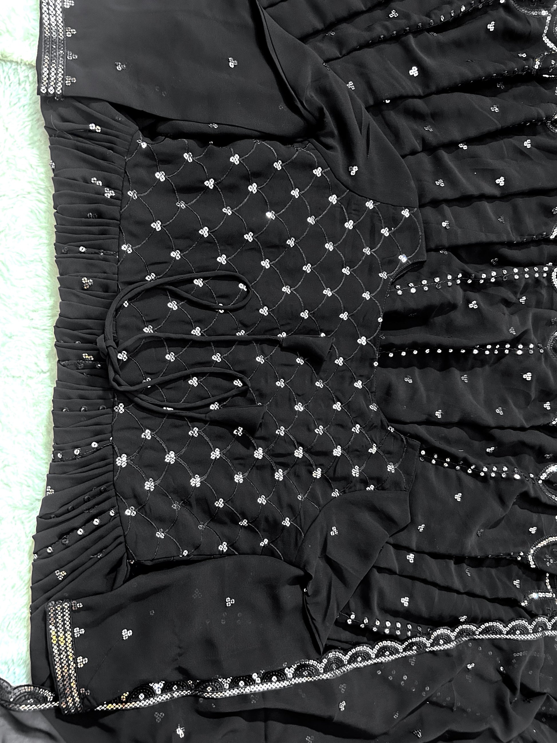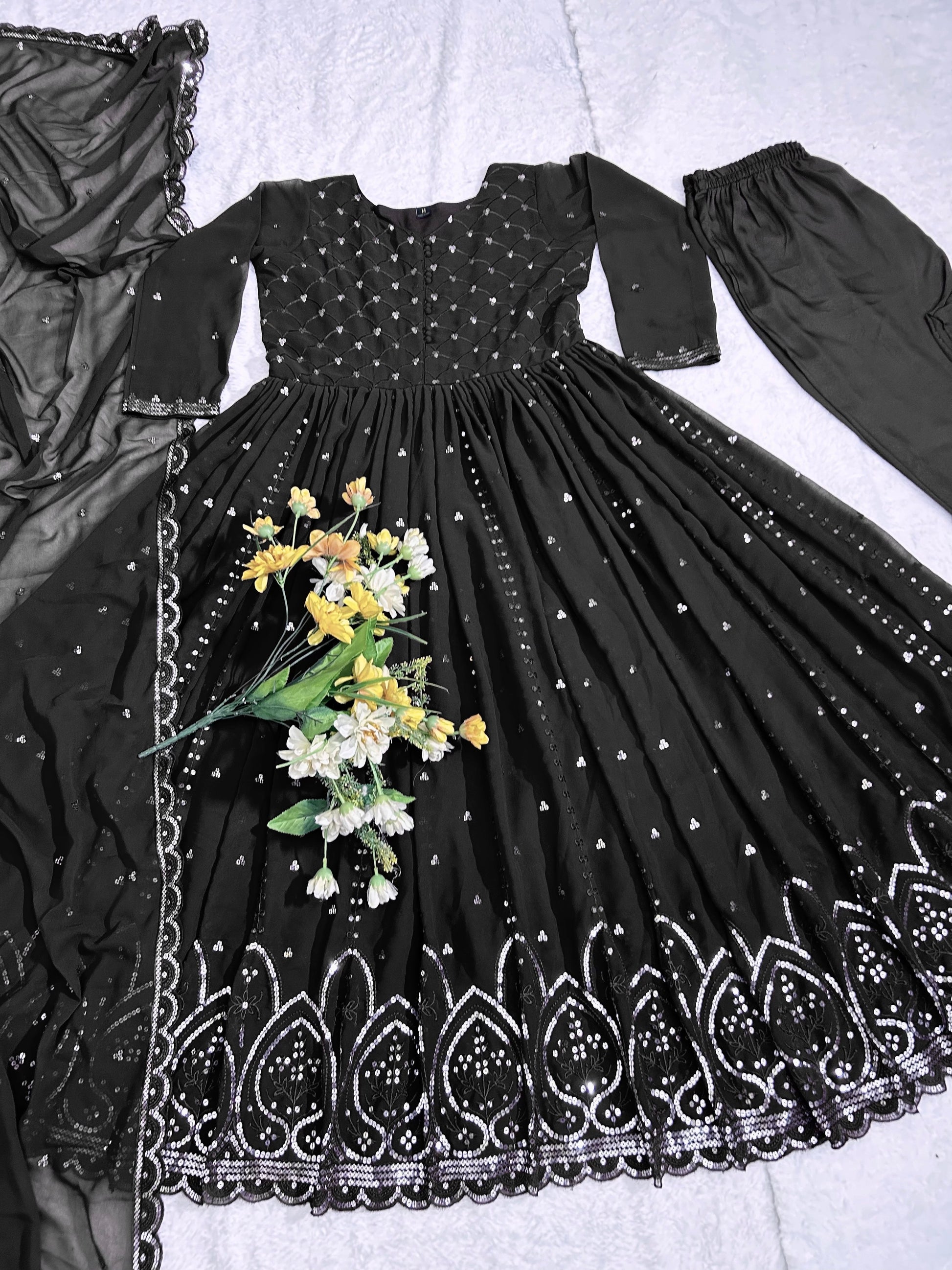 *GOWN FABRIC* :*_FOX GEORGETTE WITH EMBROIDERY 5MM SILVER SEQUENCE WORK WITH FULL SLEEVES_*