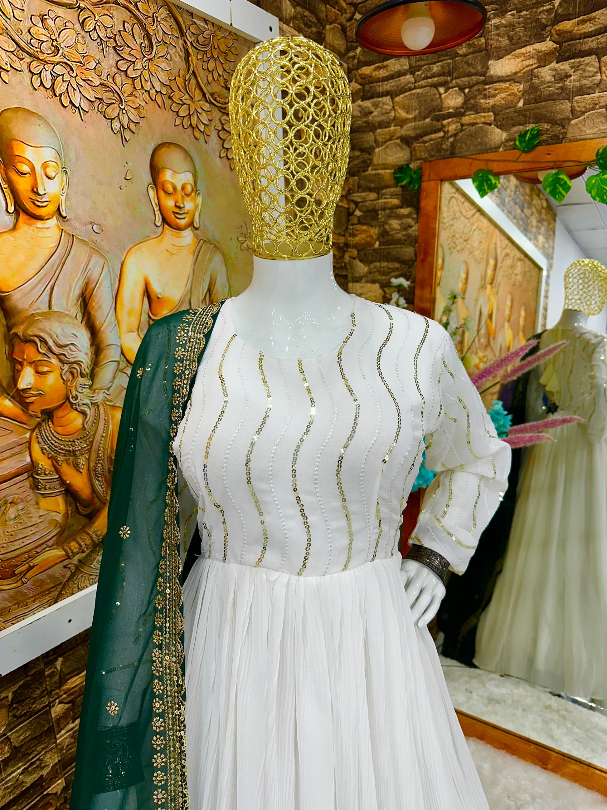 *GOWN FABRIC* :HAVY FOUX GOARGATE WITH EMBROIDERY WORK AND FULL SLEEVES