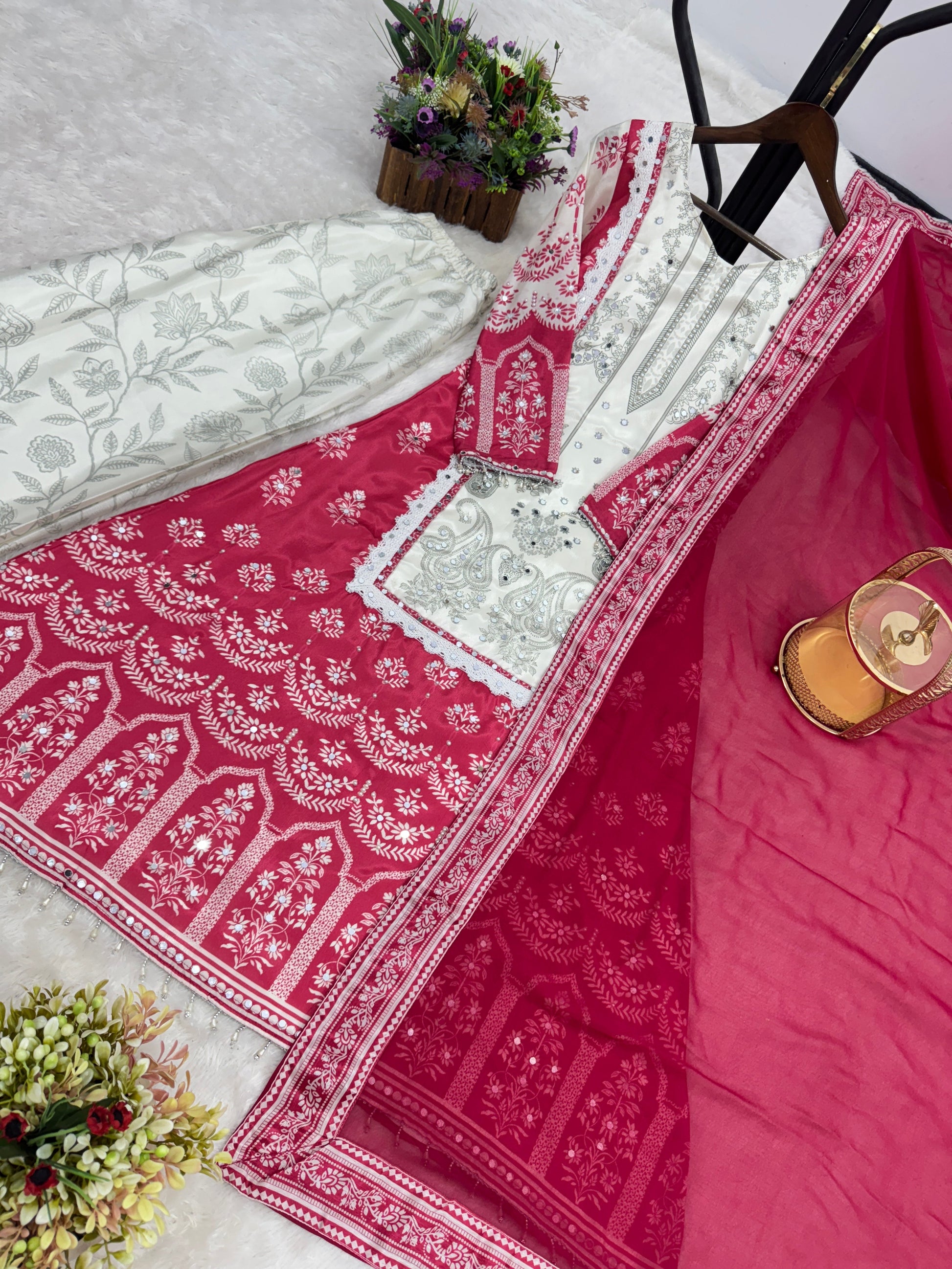 *Presenting New Designer Party Wear A-Line Pattern Fancy Top-Plazzo and Dupatta With Heavy Real Mirror Hand Work*