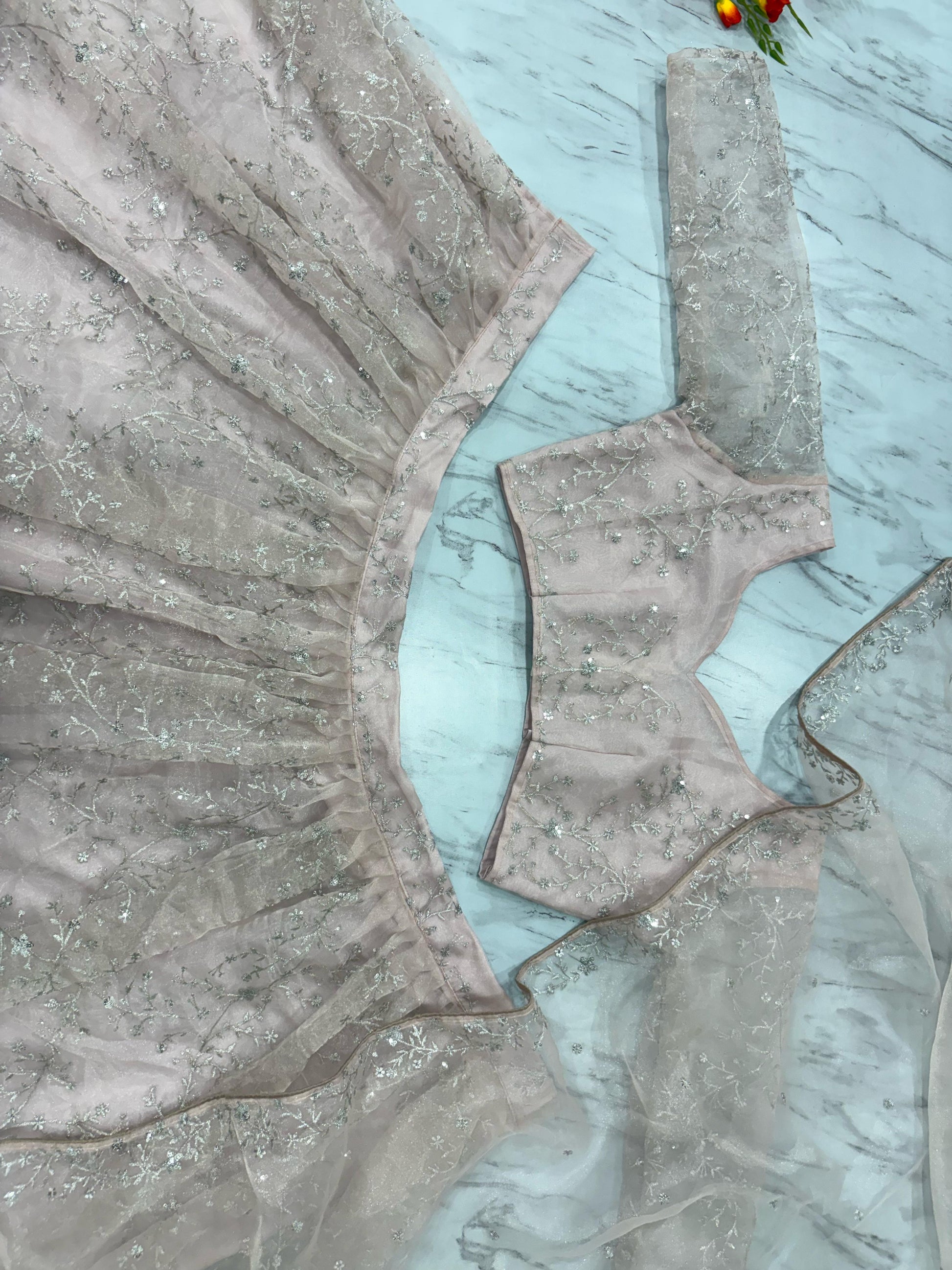Dupatta : *Premium Soft Organza Silk Embellished With Thread Embroidery Work, Beautiful Jari Work With Heavy Sequins Work*( 2.5 MTR )