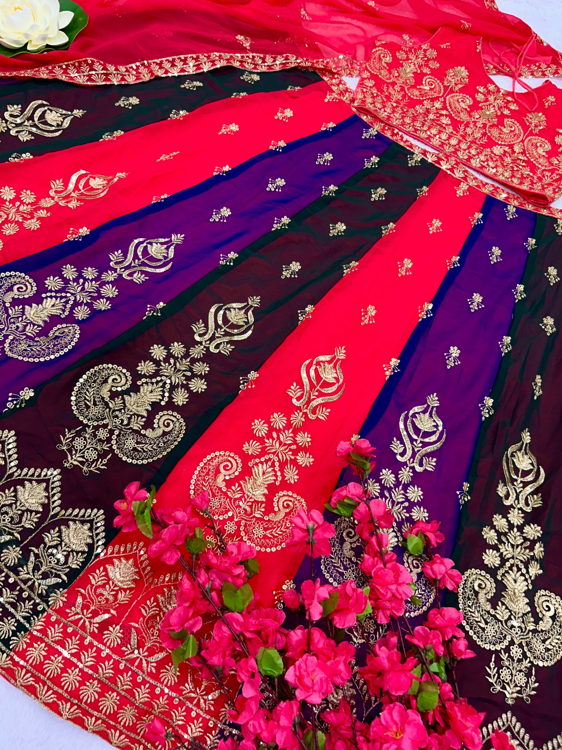 3 Multicoloured Faux gorgette silk fabric semi stiched type *_12 kali_* lehengha