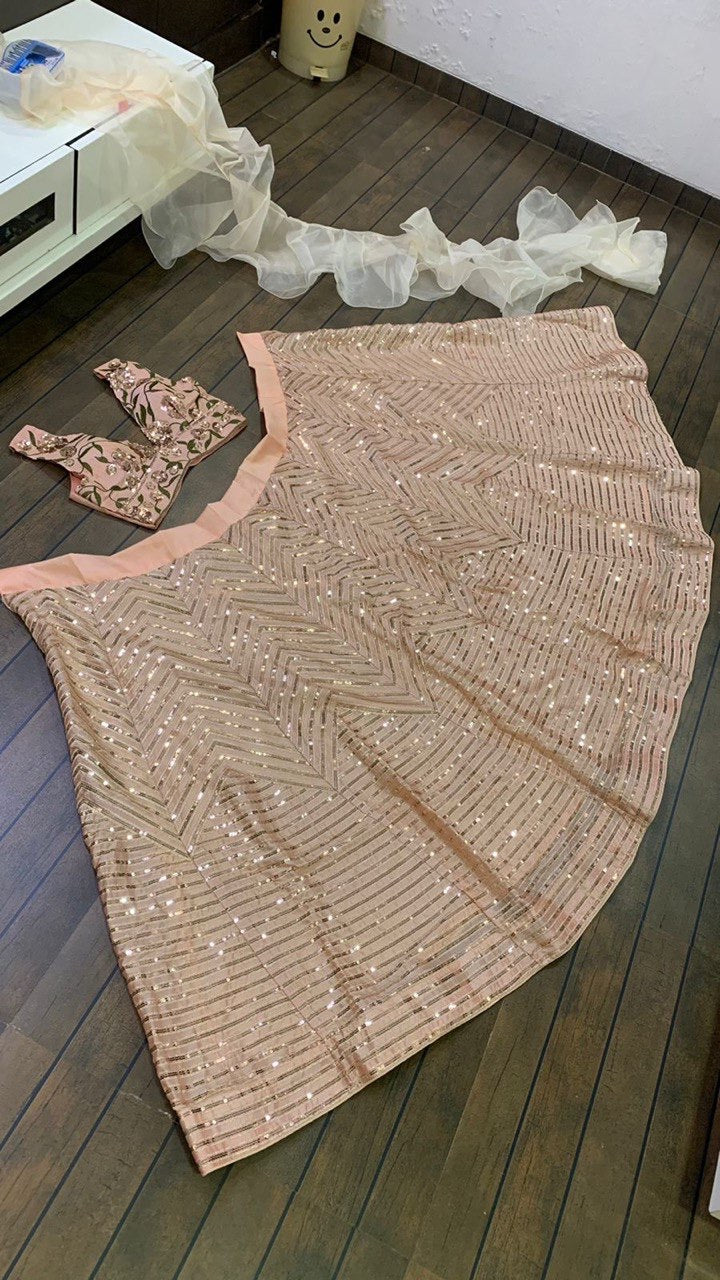 Kasturi silk lehnga with zari & sequence work with 3 meter flair
