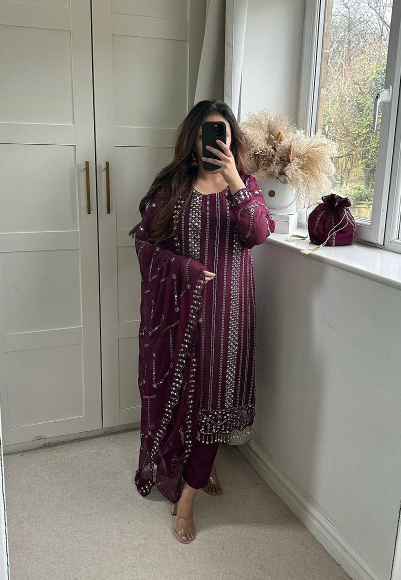 *Long Top Fabric* :- Hevay Faux Georgette Fabric With Heavy Embroidery 5mm Sequence Work *(Fully Sleeve’s)*