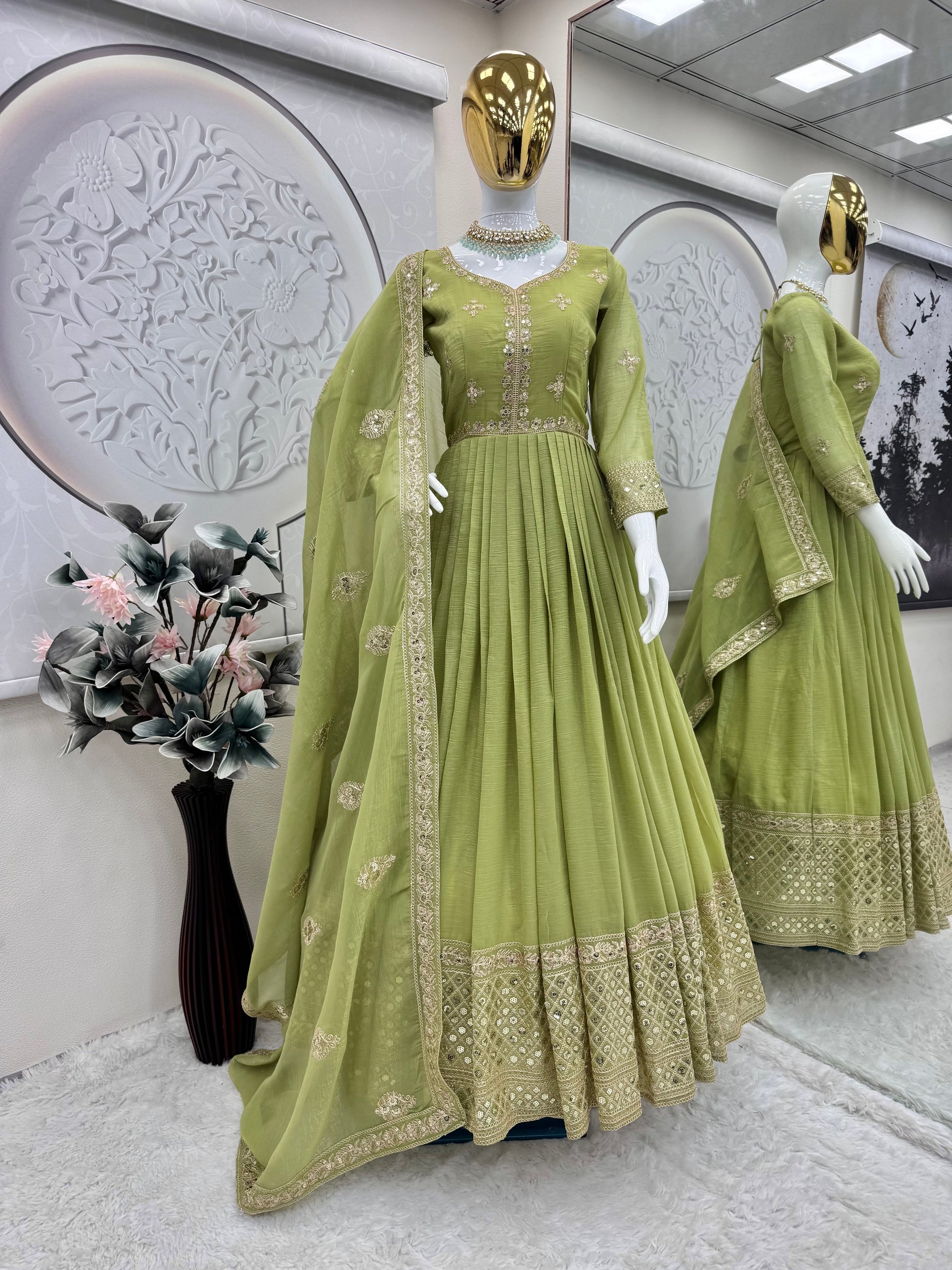 Designer Party Wear Look Gown With Embroidery Codding & Sequins Work