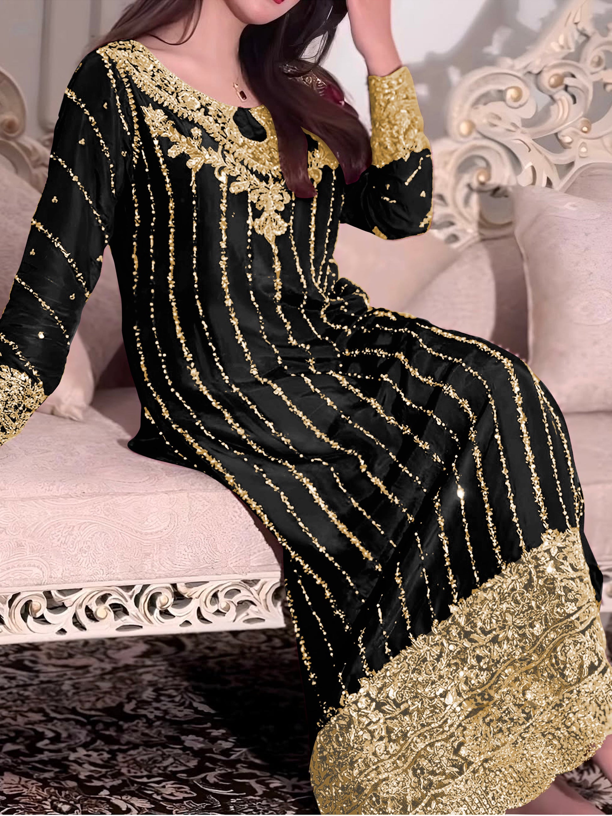 *Plazzo Fabric*:Heavy Chinon Silk With Embroidery 5 mm Sequence Work With Elastic
