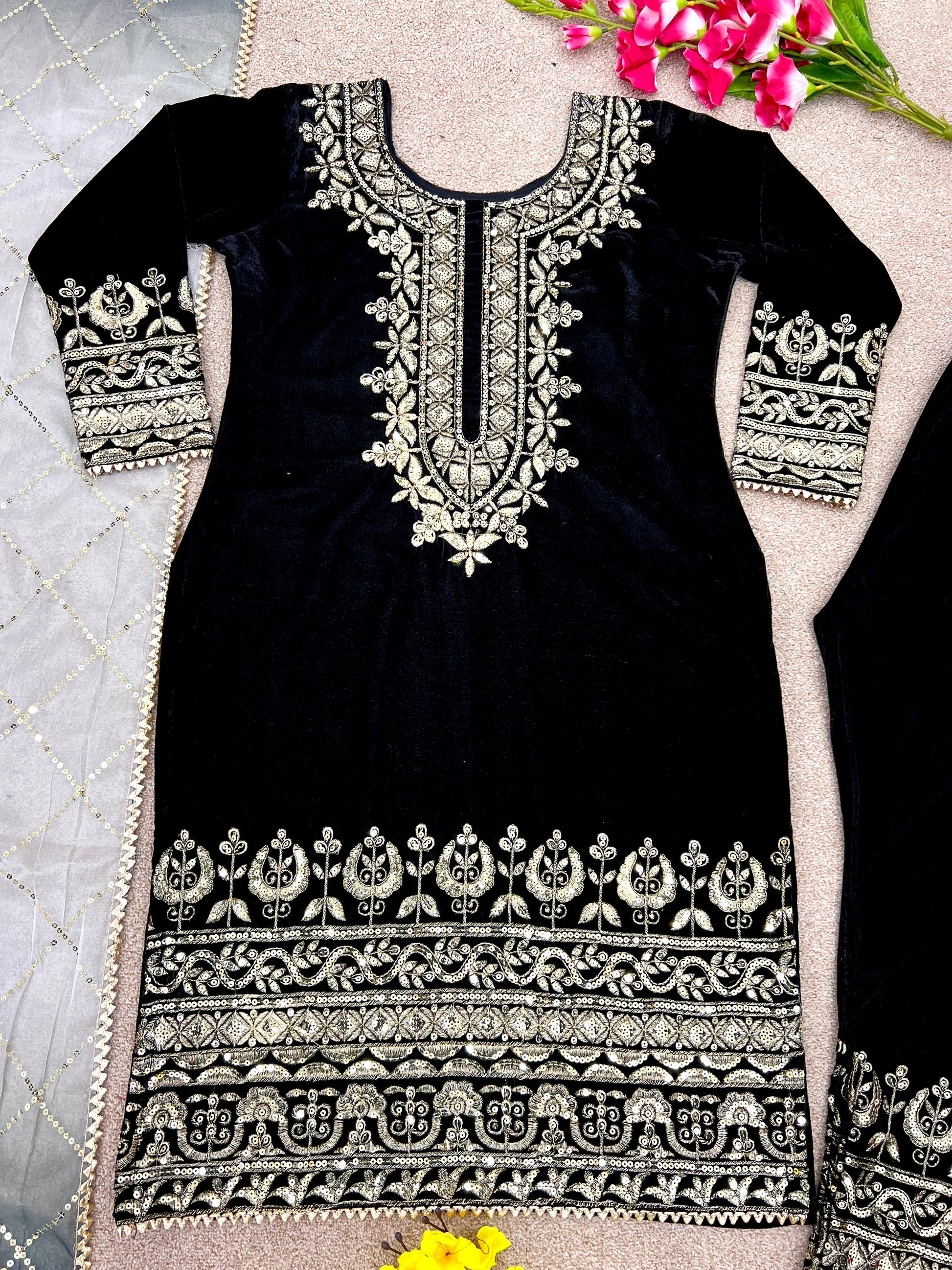*Bottom Fabric* : Viscose Velvet with *5mm Embroidery sequence work( *Full Stiched*)