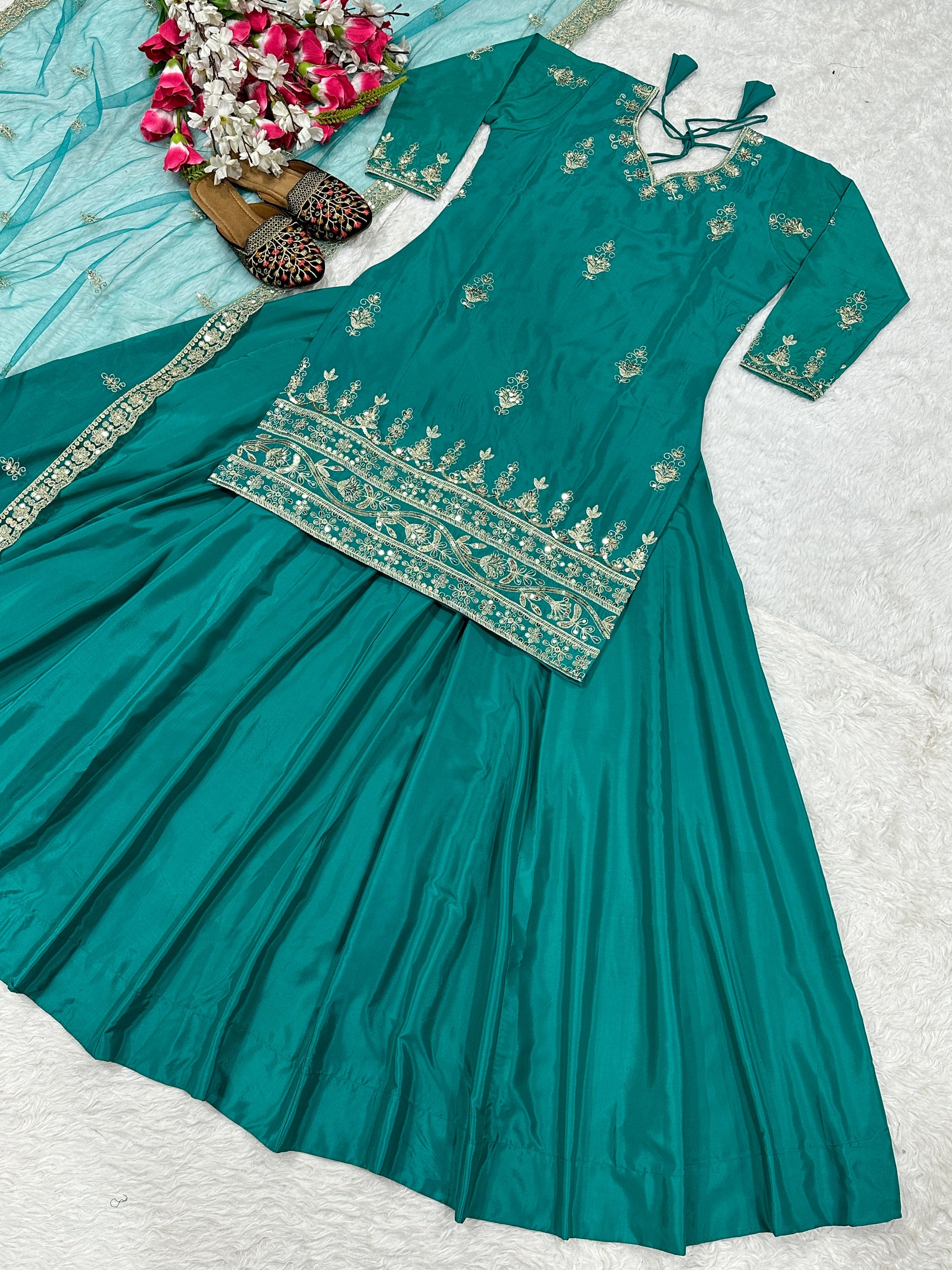 *Top Fabric * : Natural Crep Material With 5mm Sequence Embroidery Work..
